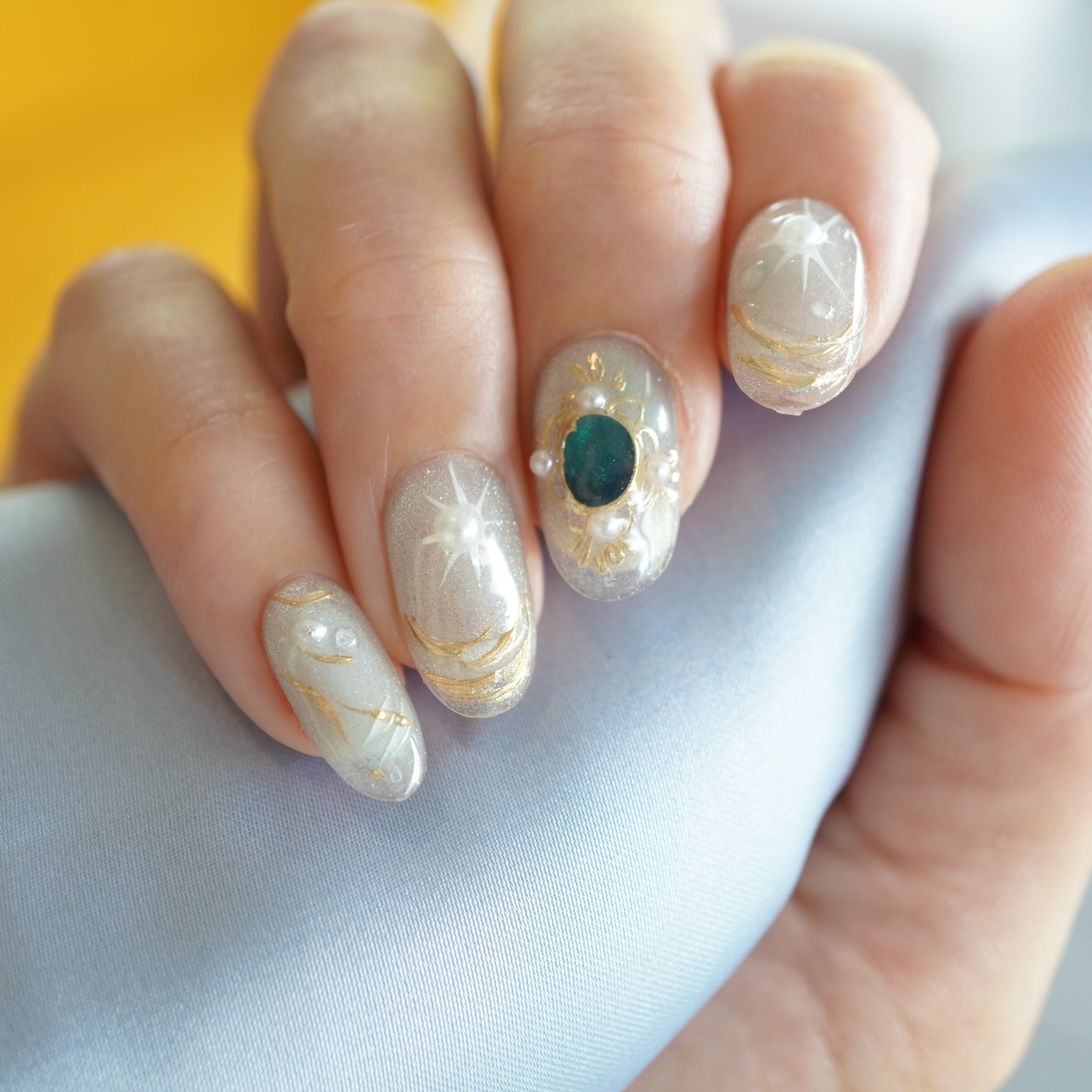 #465 ミディアム/XY039 繰り返し使えるネイルチップ