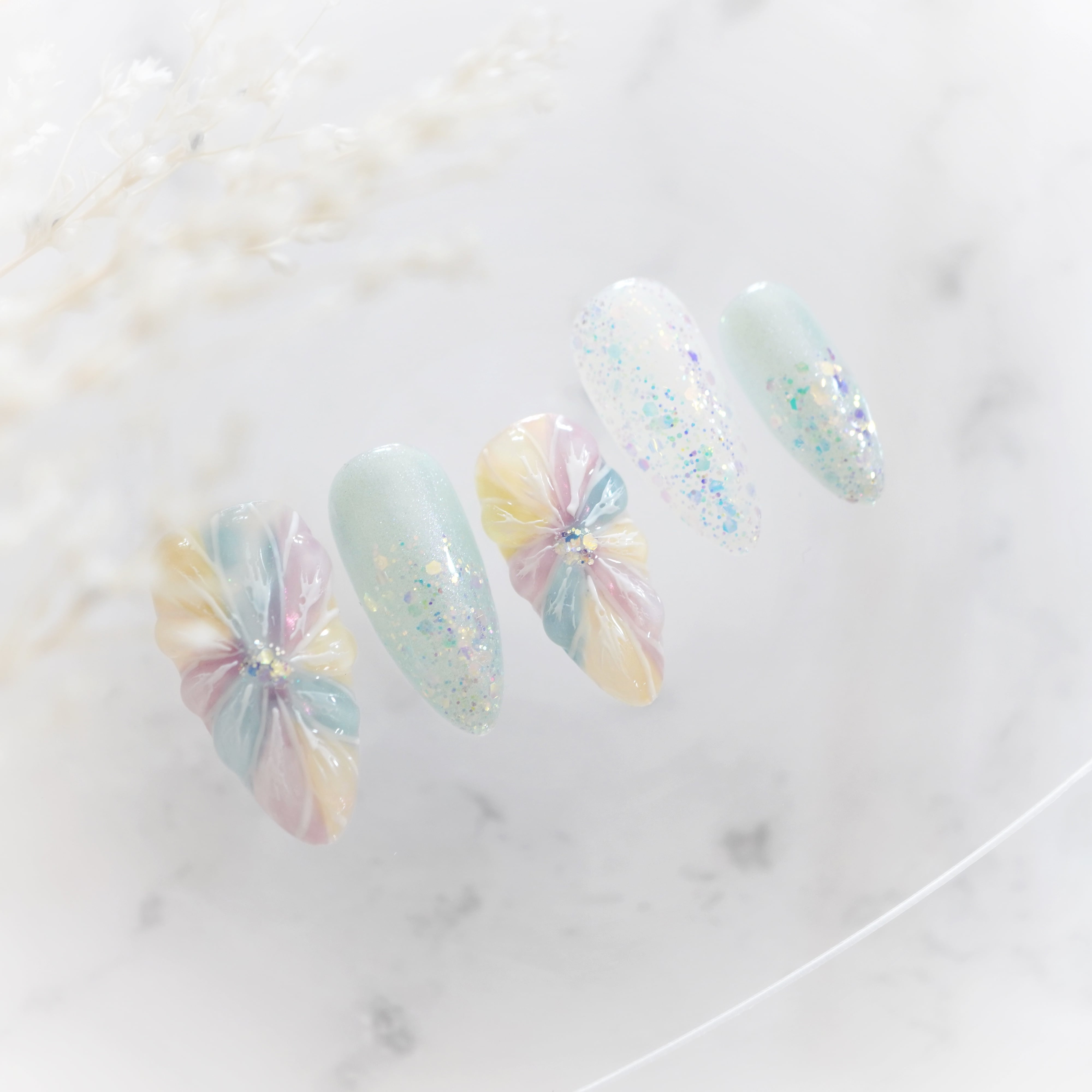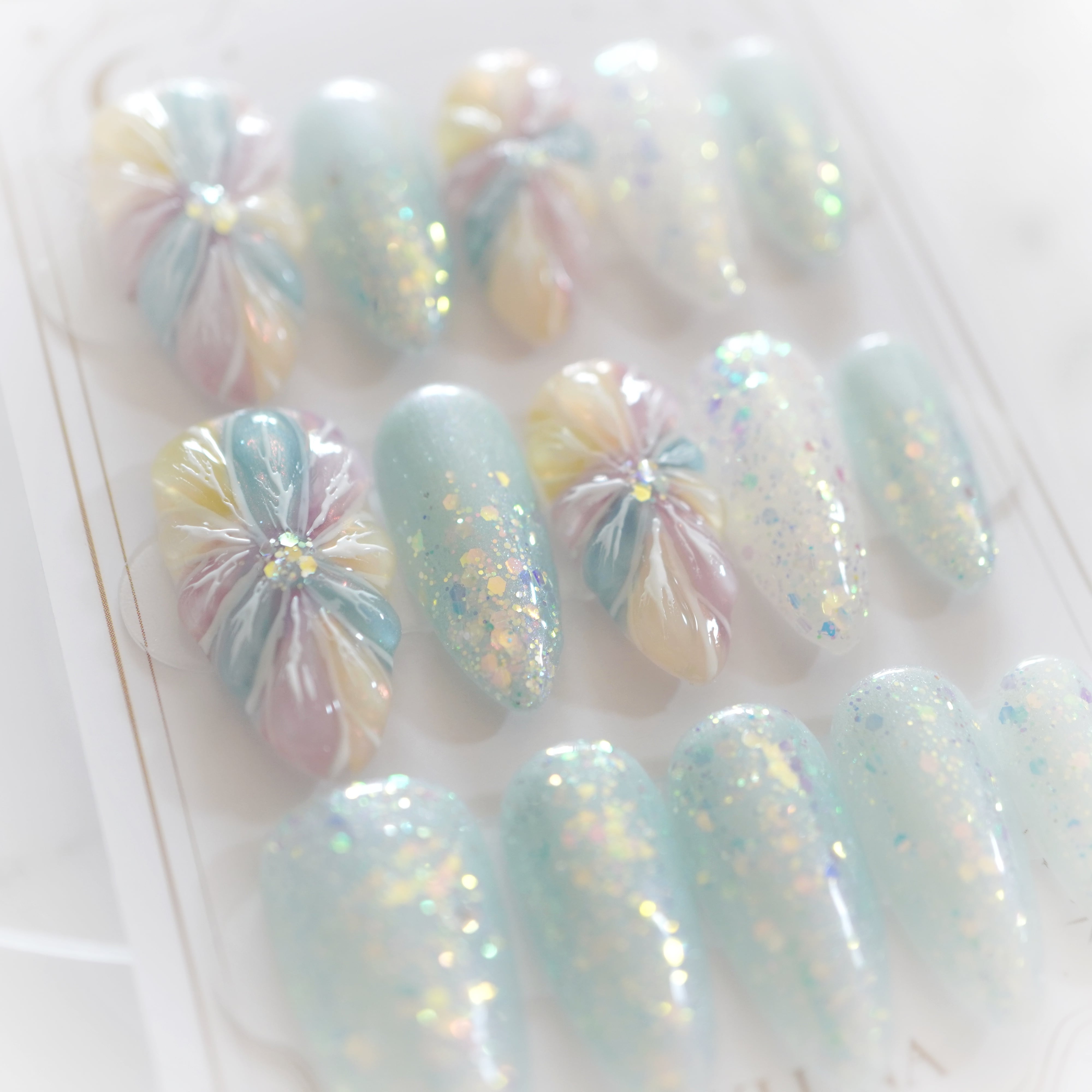 #610 ロング アーモンド/XY179 繰り返し使えるネイルチップ