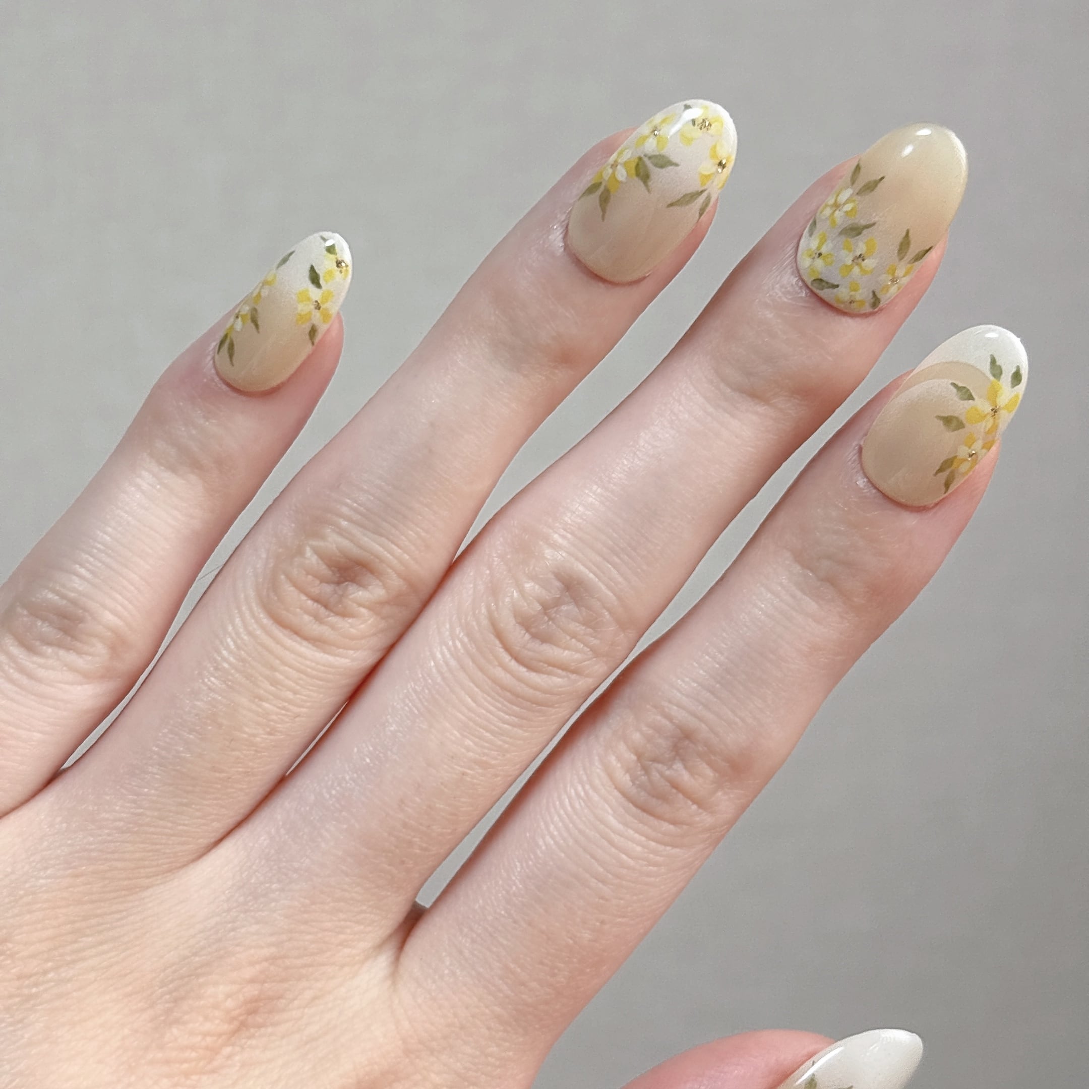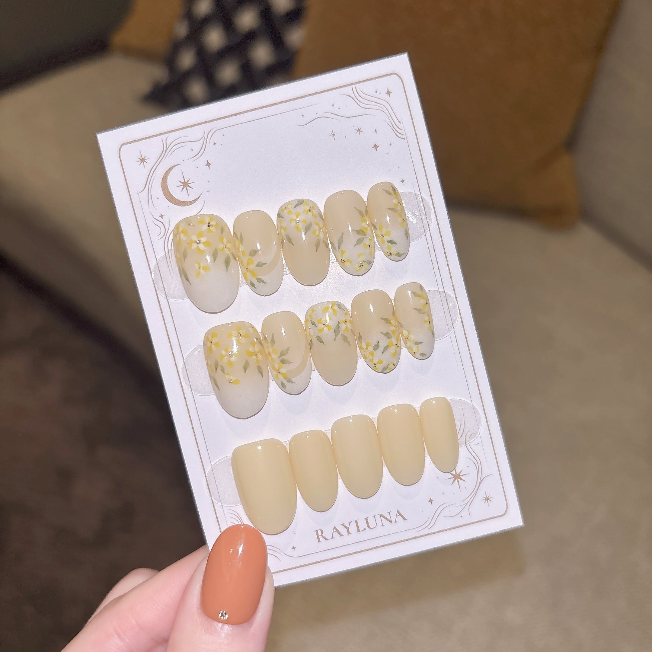 #666 繰り返し使えるネイルチップ【プレミアム】15枚セット/ミディアム オーバル/金木犀/XY226