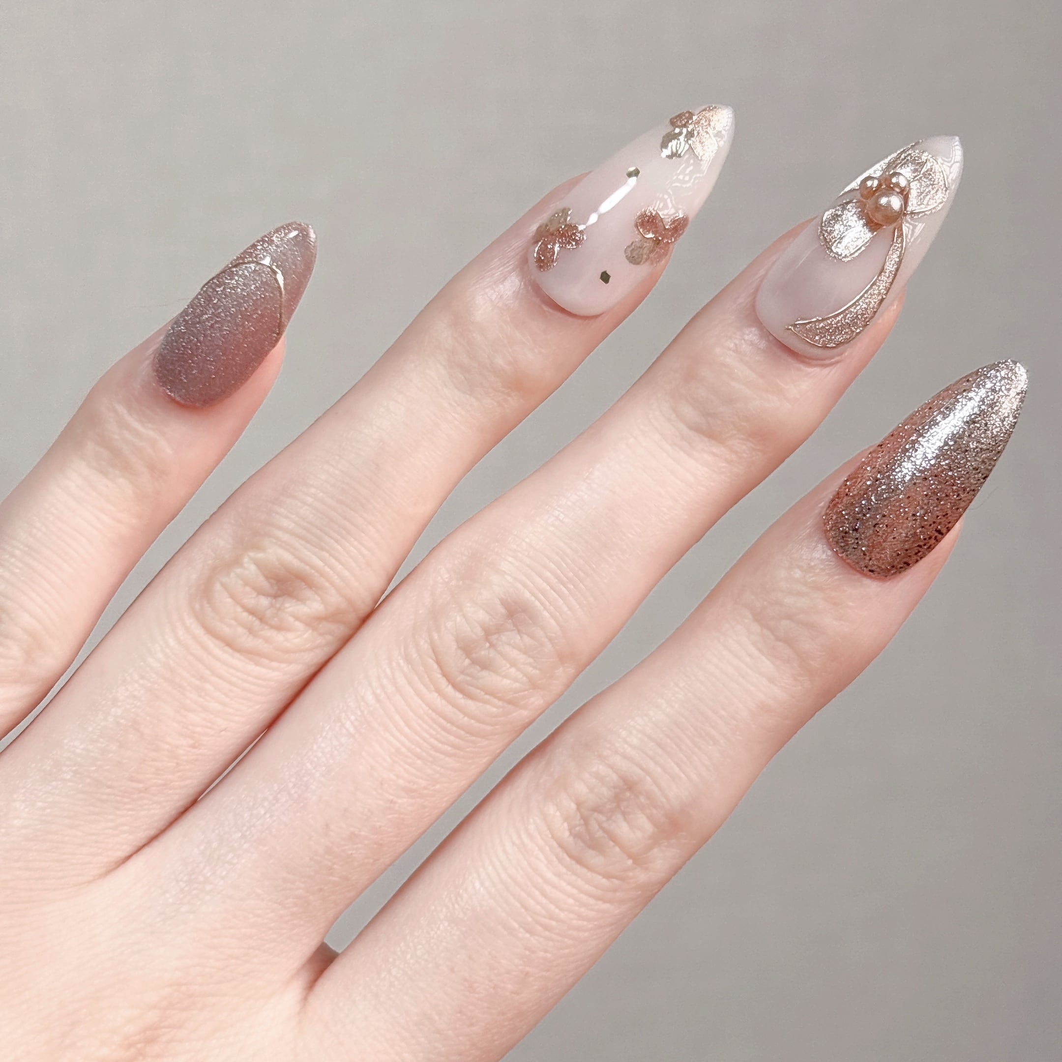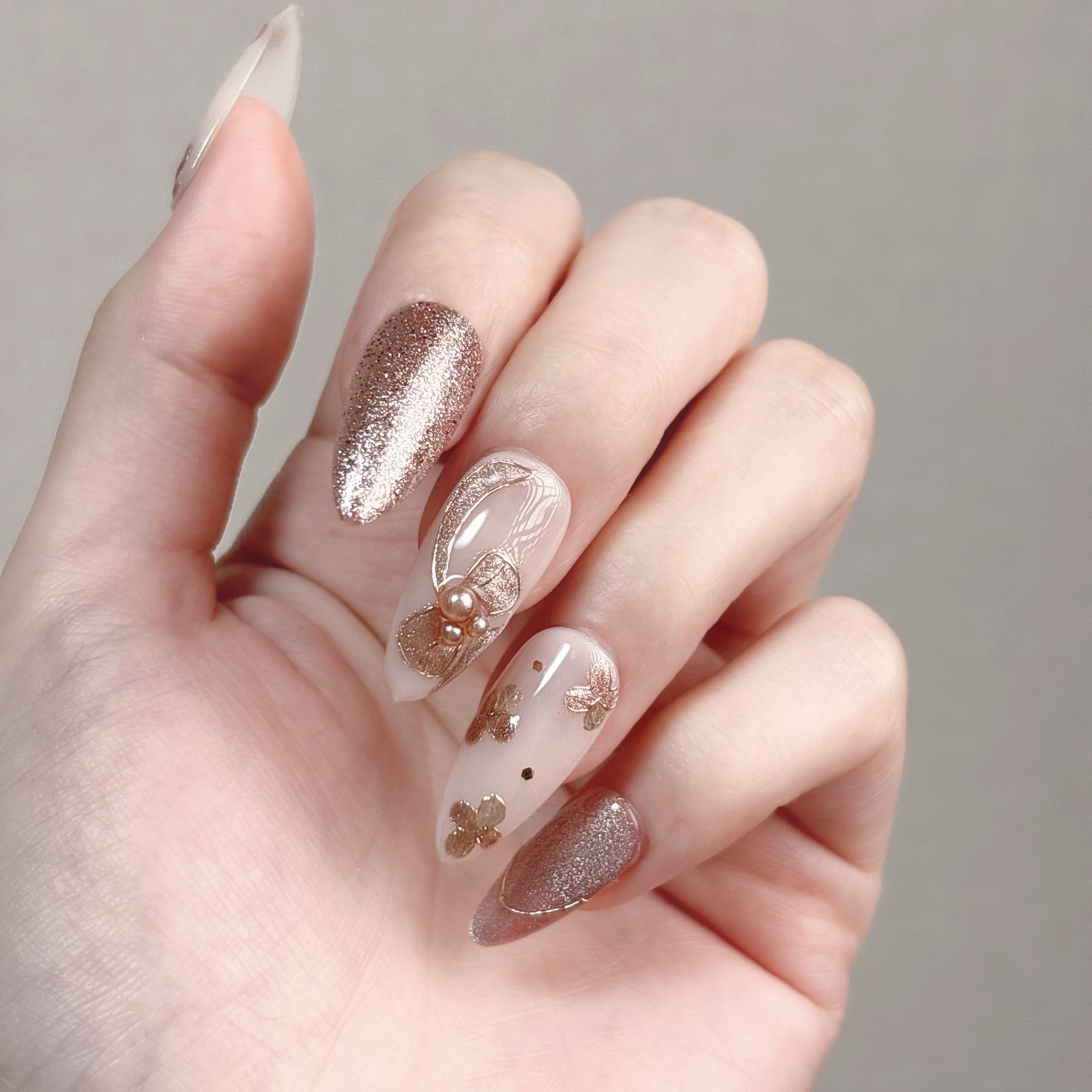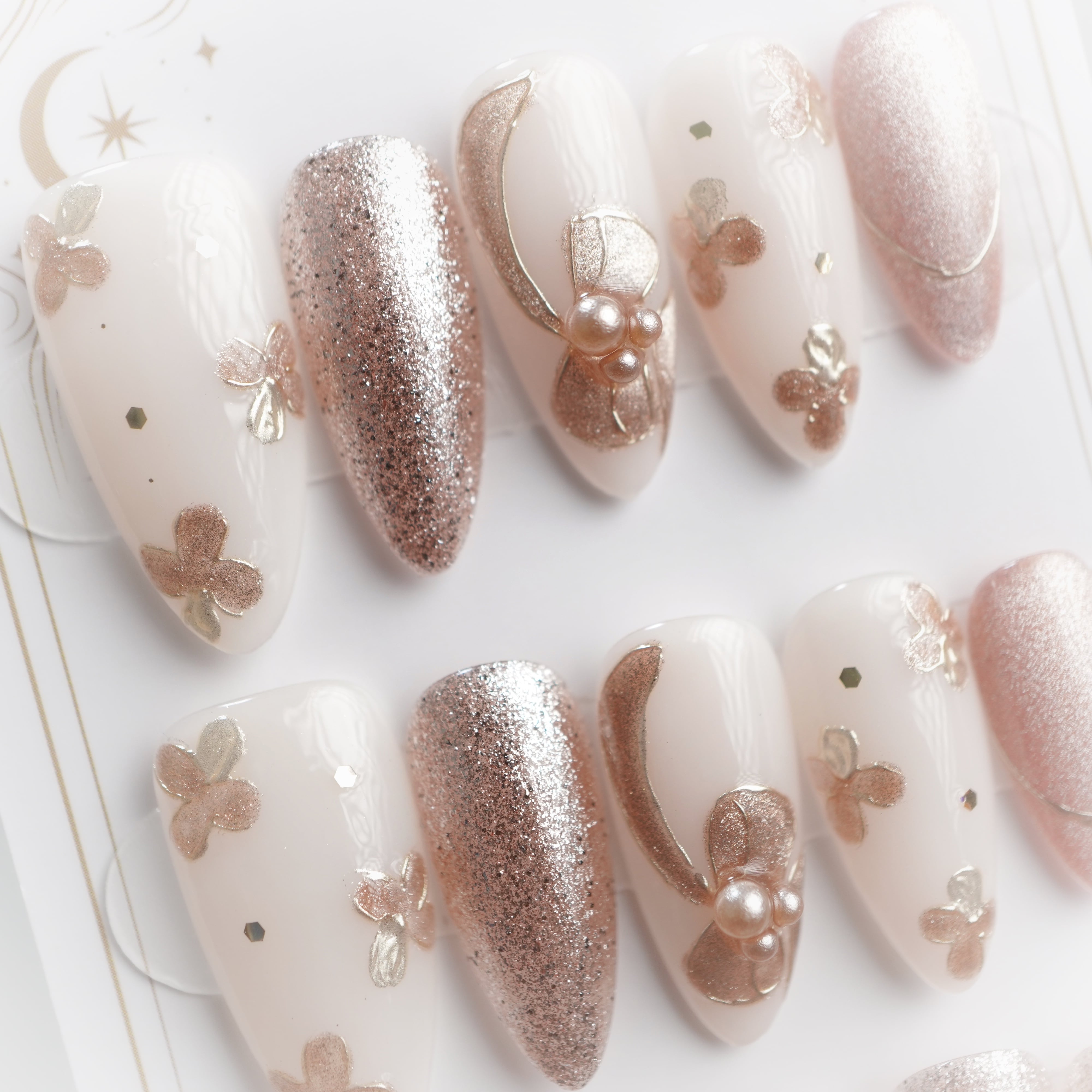 #664 繰り返し使えるネイルチップ【プレミアム】ホワイト ピンク/ロング ポイント/XY224