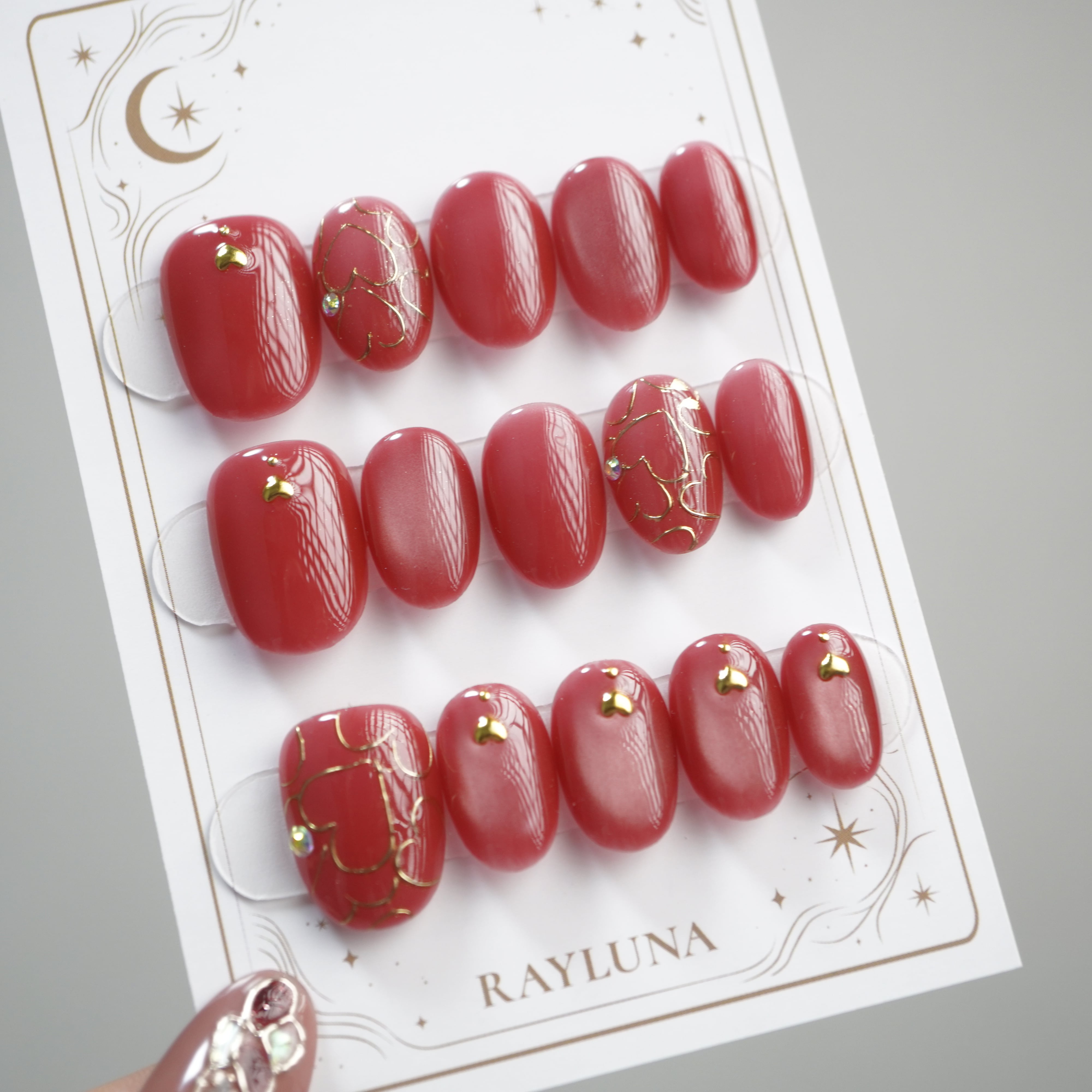 プレミアムネイルチップ15枚セット【#683 】赤ピンク:ショートアーモンド:繰り返し使えて長持ちするネイルチップ :XY243
