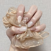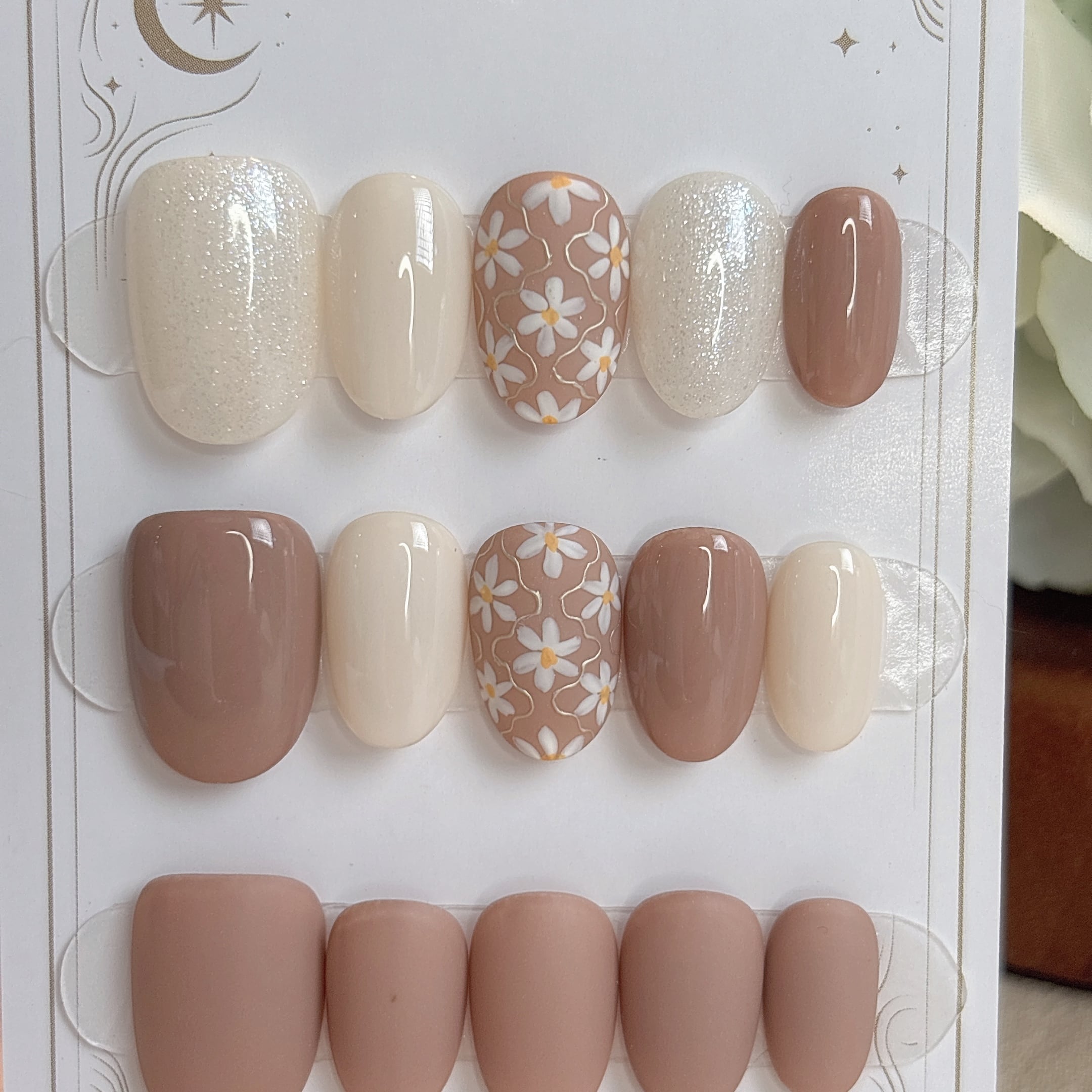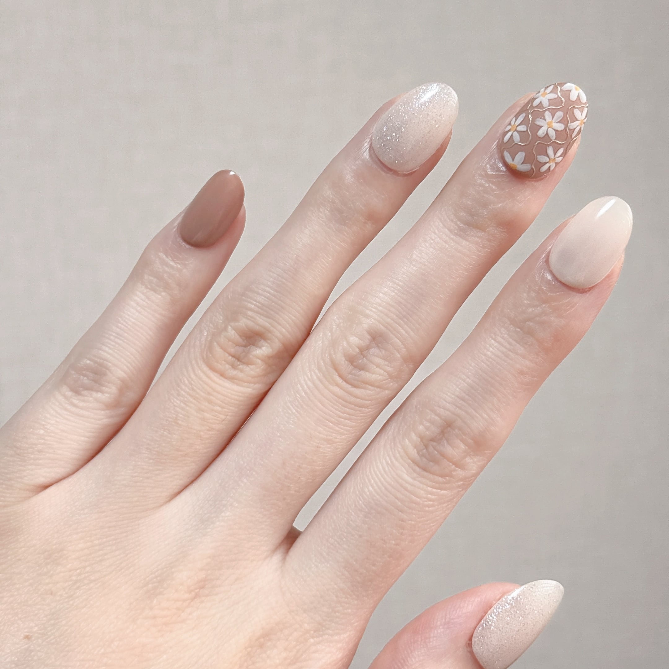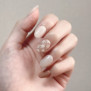 #677 ショート アーモンド/XY237 繰り返し使えるネイルチップ