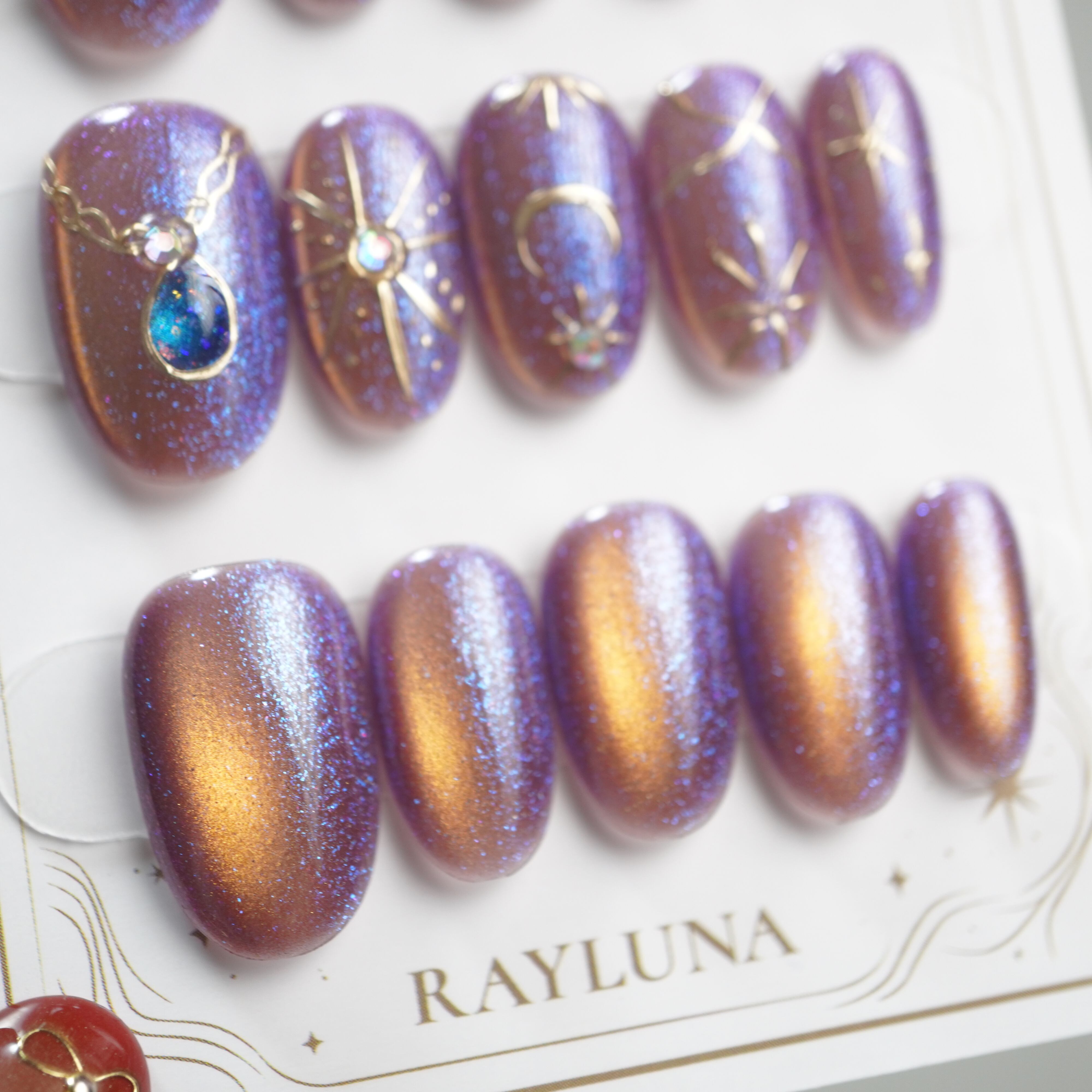 【#690 】Rayluna GALAXY プレミアムネイルチップ15枚セットパープル:ミディアムオーバル:繰り返し使えて長持ちするネイルチップ :XY250