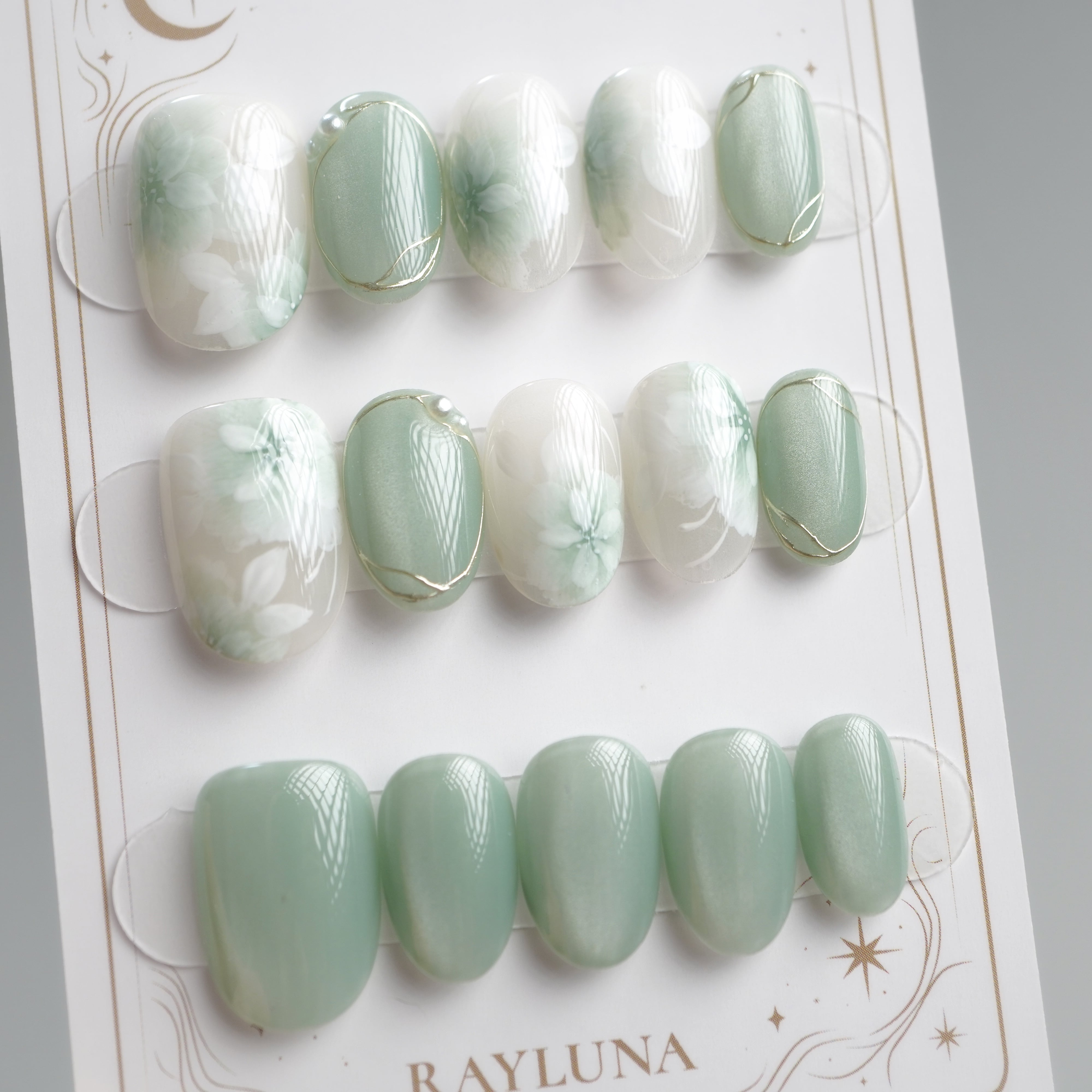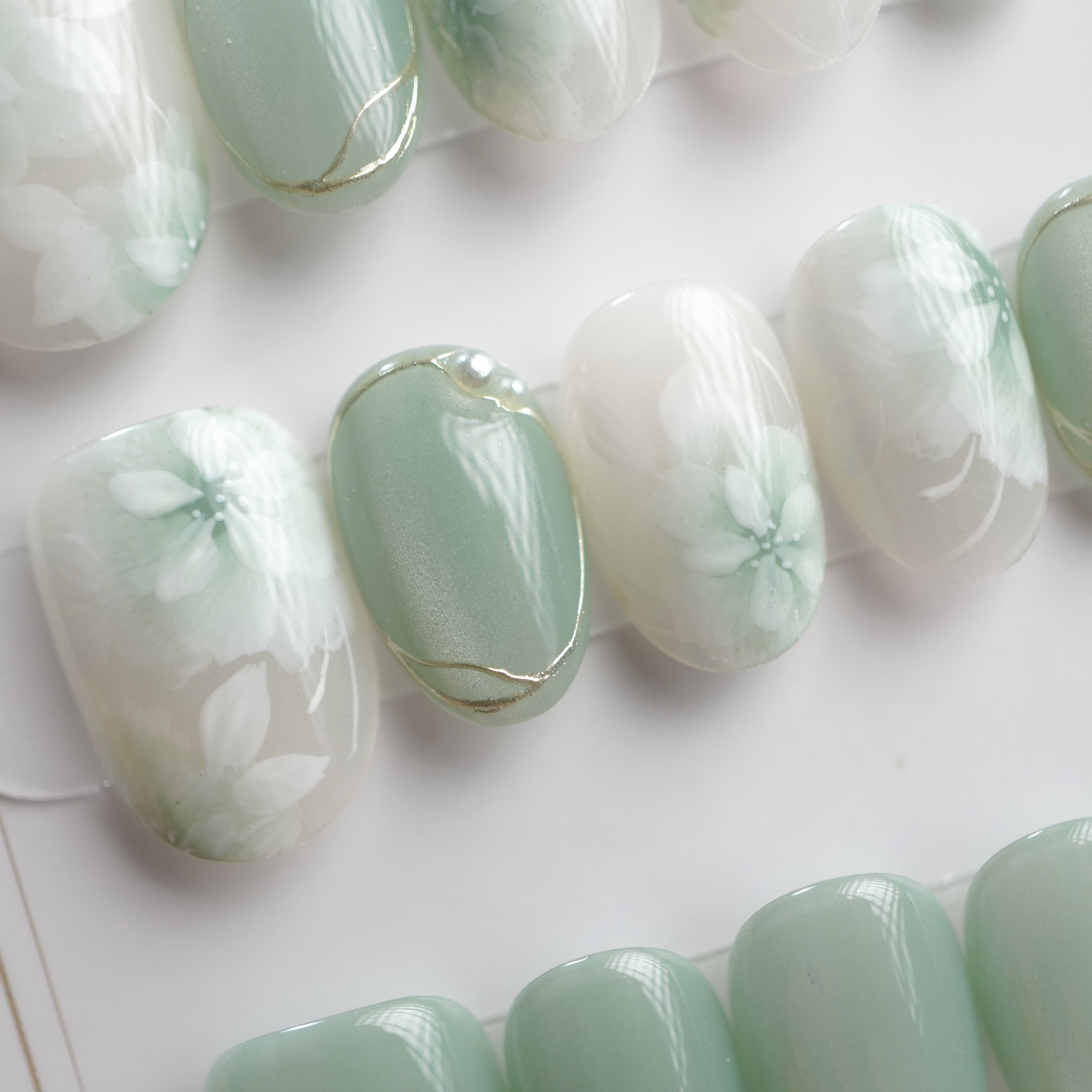 【#679】繰り返し使える【プレミアム】ネイルチップ/15枚セット/ライトグリーン/ショートアーモンド/XX239