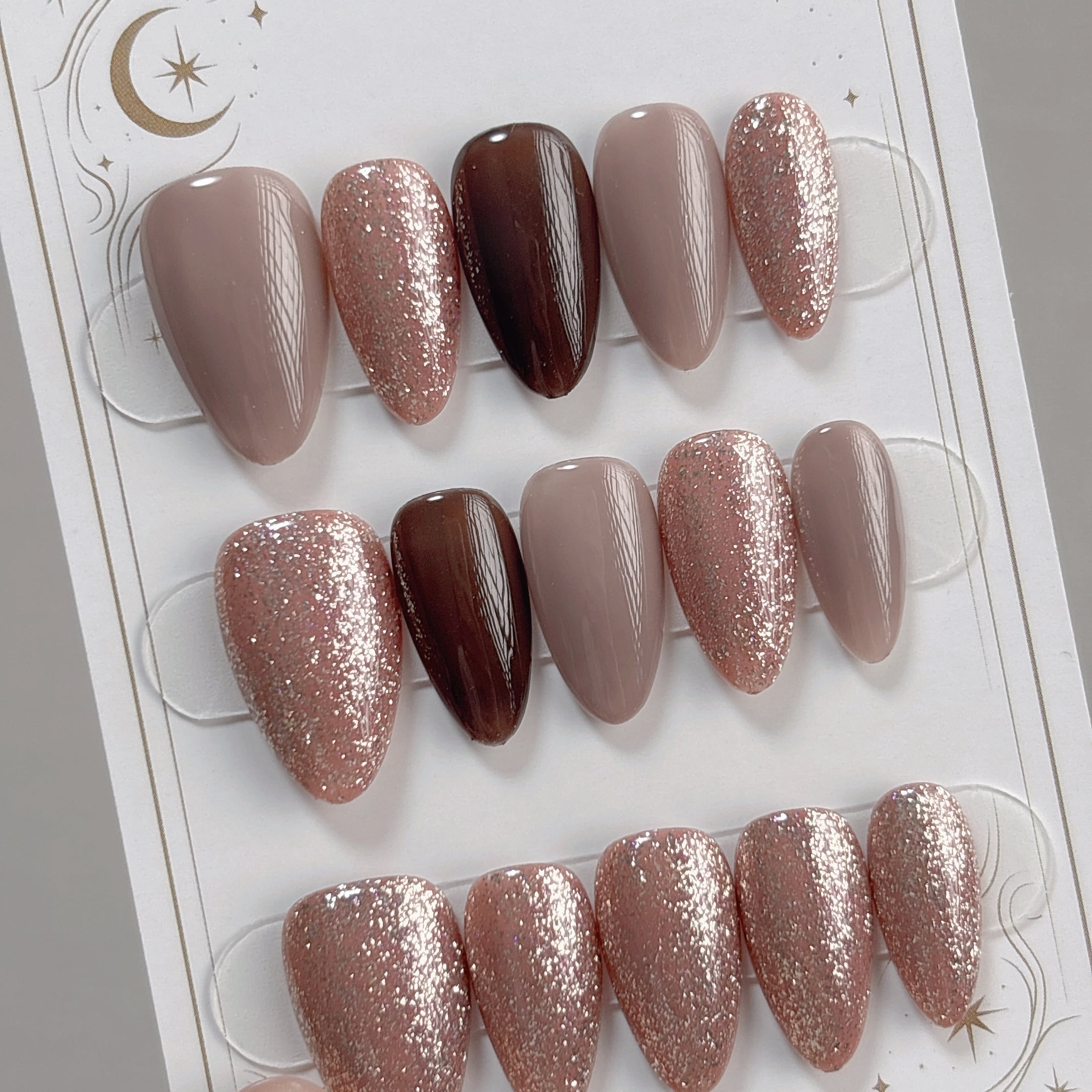#688 ミディアム アーモンド/XY248 繰り返し使えるネイルチップ
