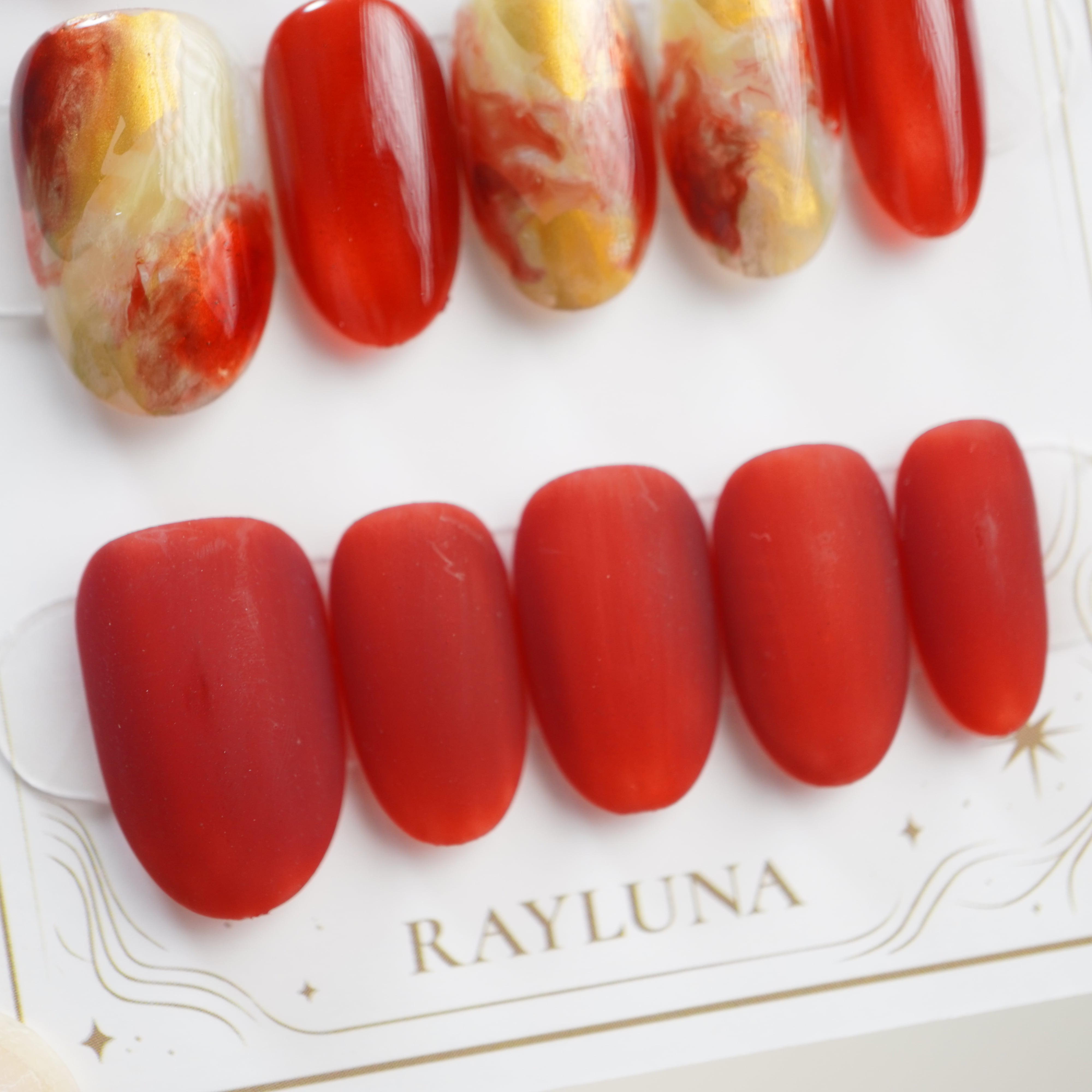 【#705】繰り返し使える【プレミアム】ネイルチップ/15枚セット/赤マグネット/ミディアムオーバル/XX265