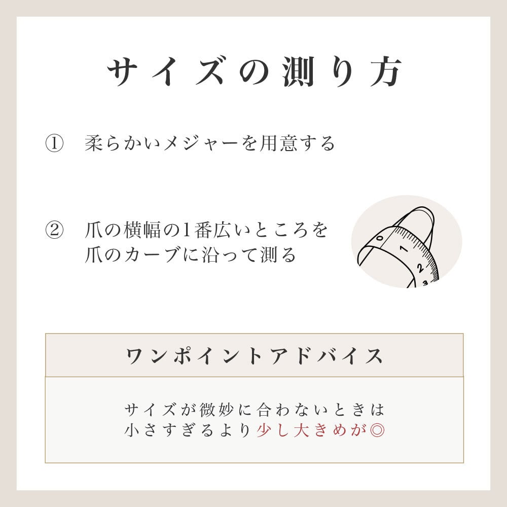 →柔らかいメジャーを用意して、自爪の一番広いところをカーブに沿わせて測る。