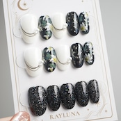 【#725】繰り返し使える【プレミアム】ネイルチップ15枚セット/【#】黒 ※シール推薦 /ミディアム オーバル/XX285