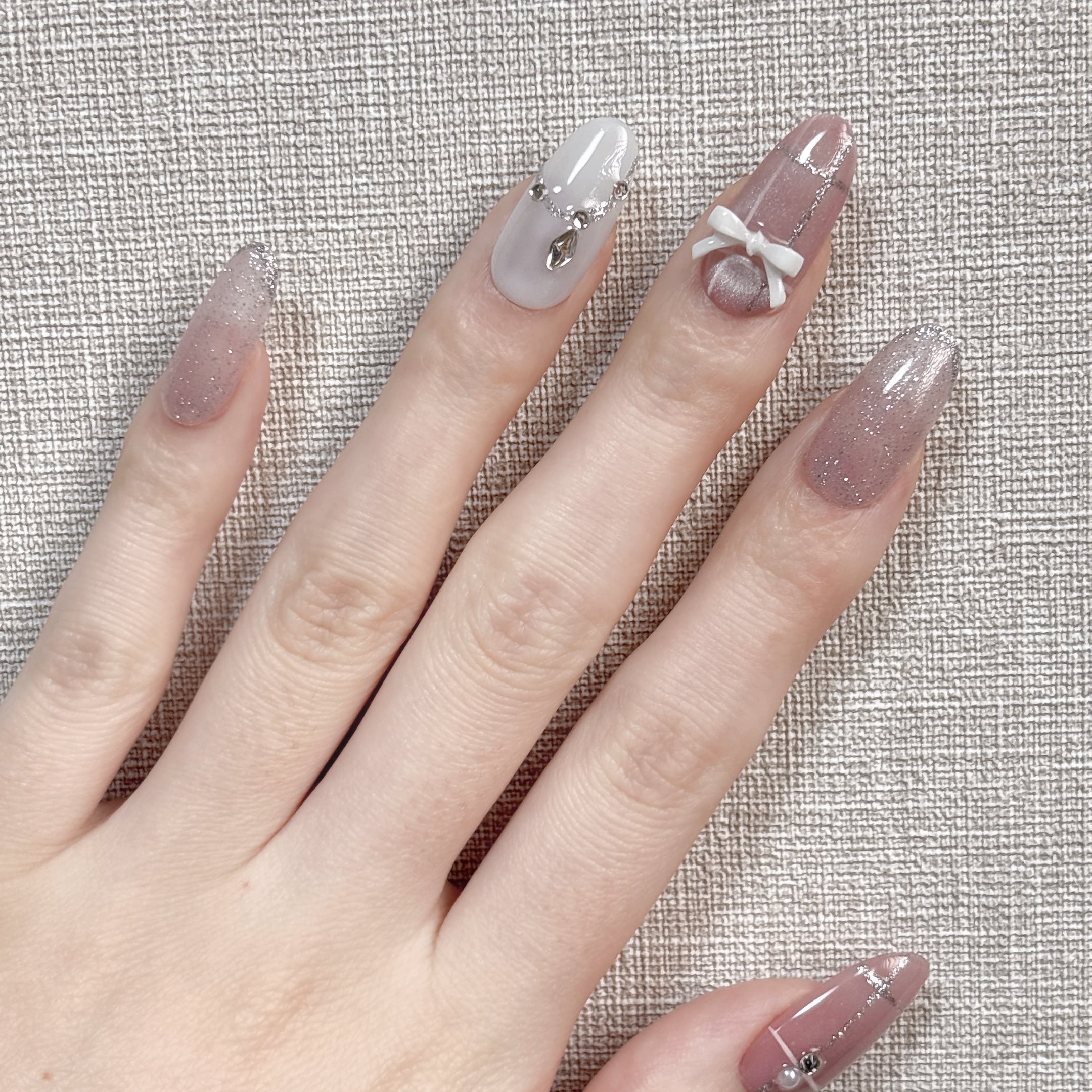 【#722】繰り返し使える【プレミアム】ネイルチップ15枚セット/ロング オーバル/XY282