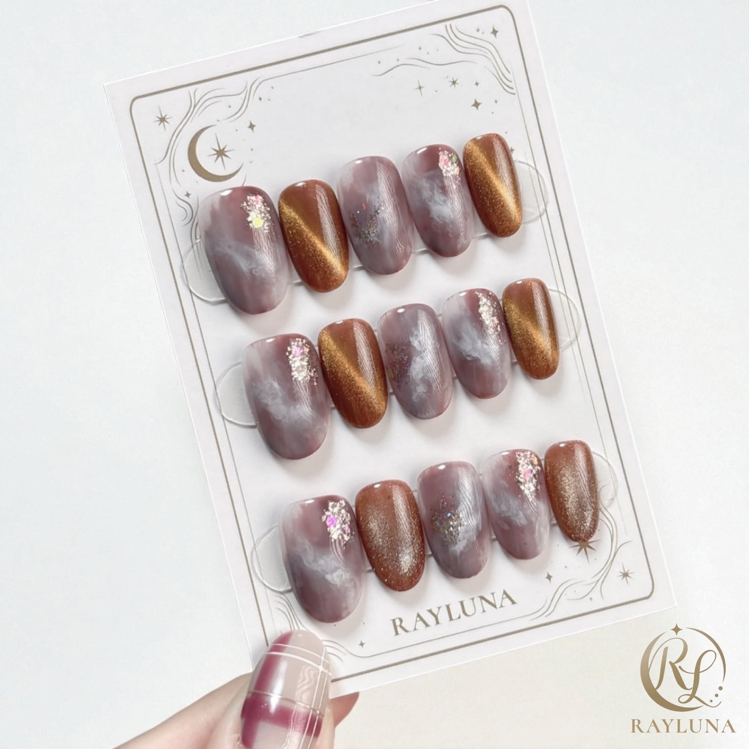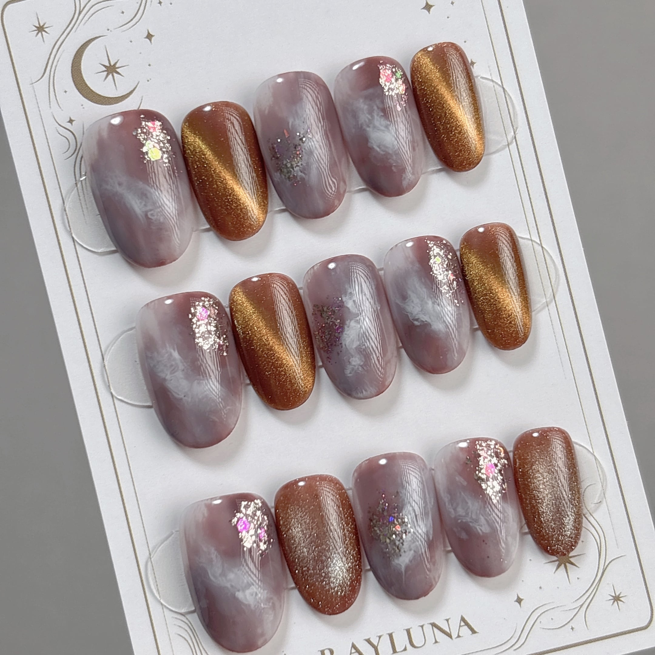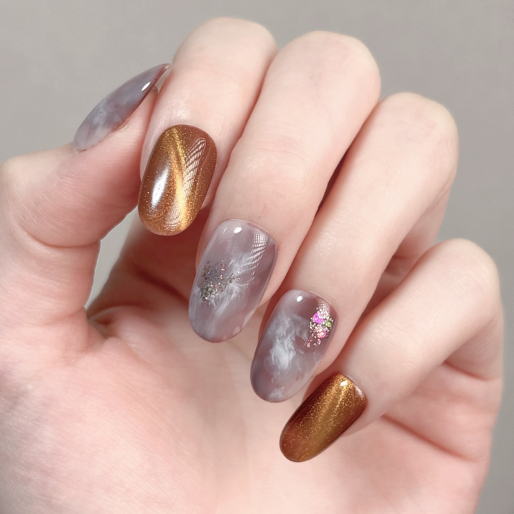【#734】繰り返し使える【プレミアム】ネイルチップ15枚セット/ミディアム オーバル/XY294