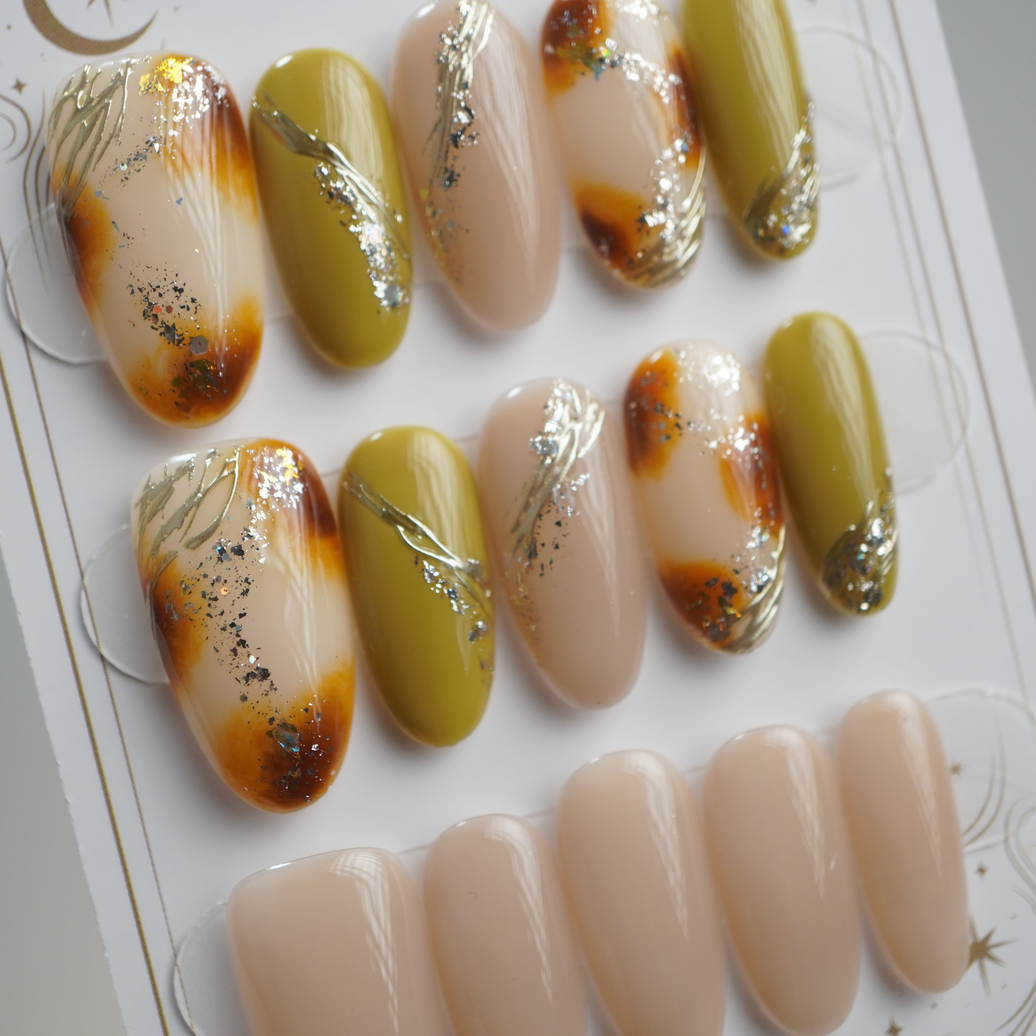 【#733】繰り返し使える【プレミアム】ネイルチップ15枚セット/ブラウン ベージュ/ ロング アーモンド/XY293