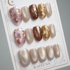 【#752】繰り返し使える【プレミアム】ネイルチップ15枚セット/ミディアム オーバル/XY312