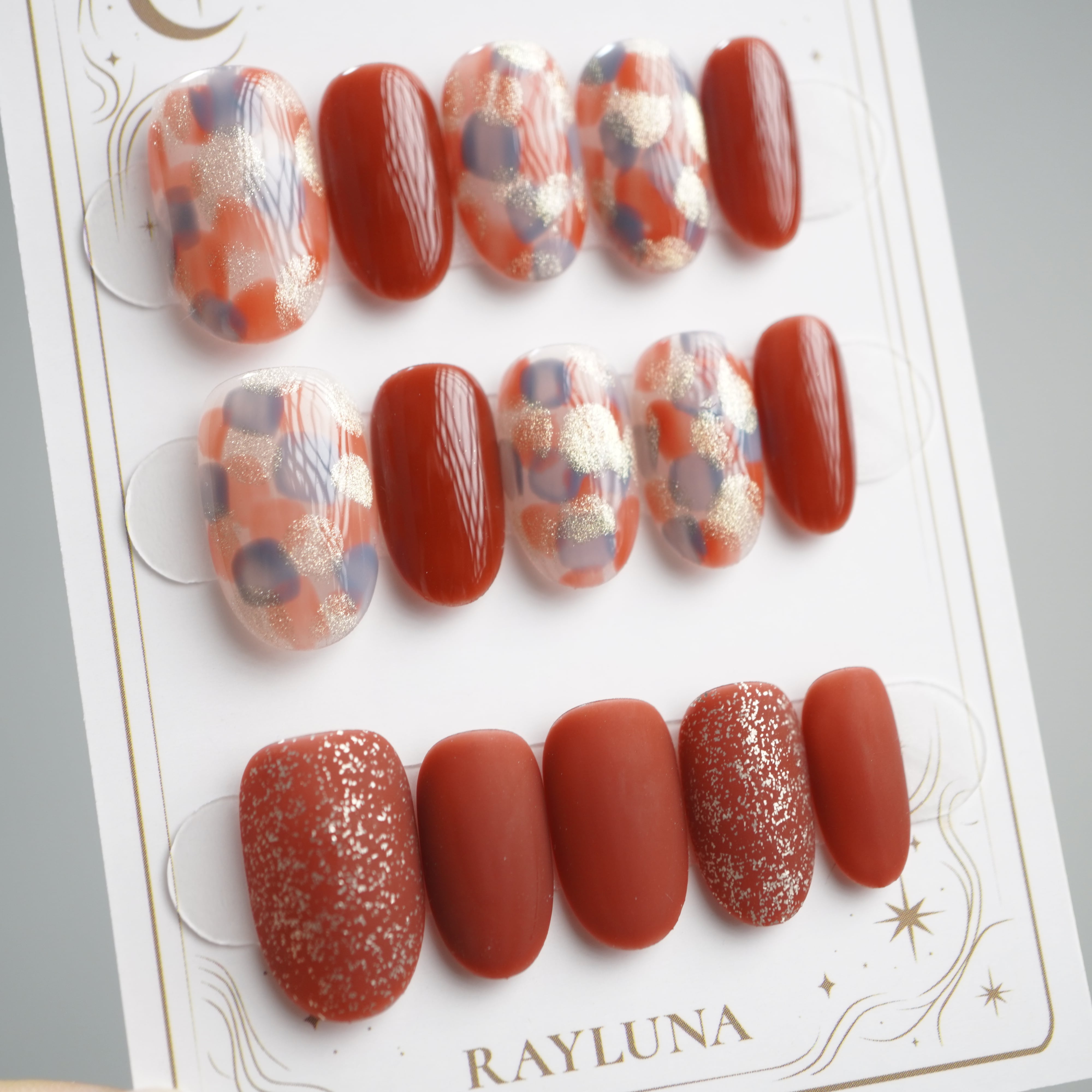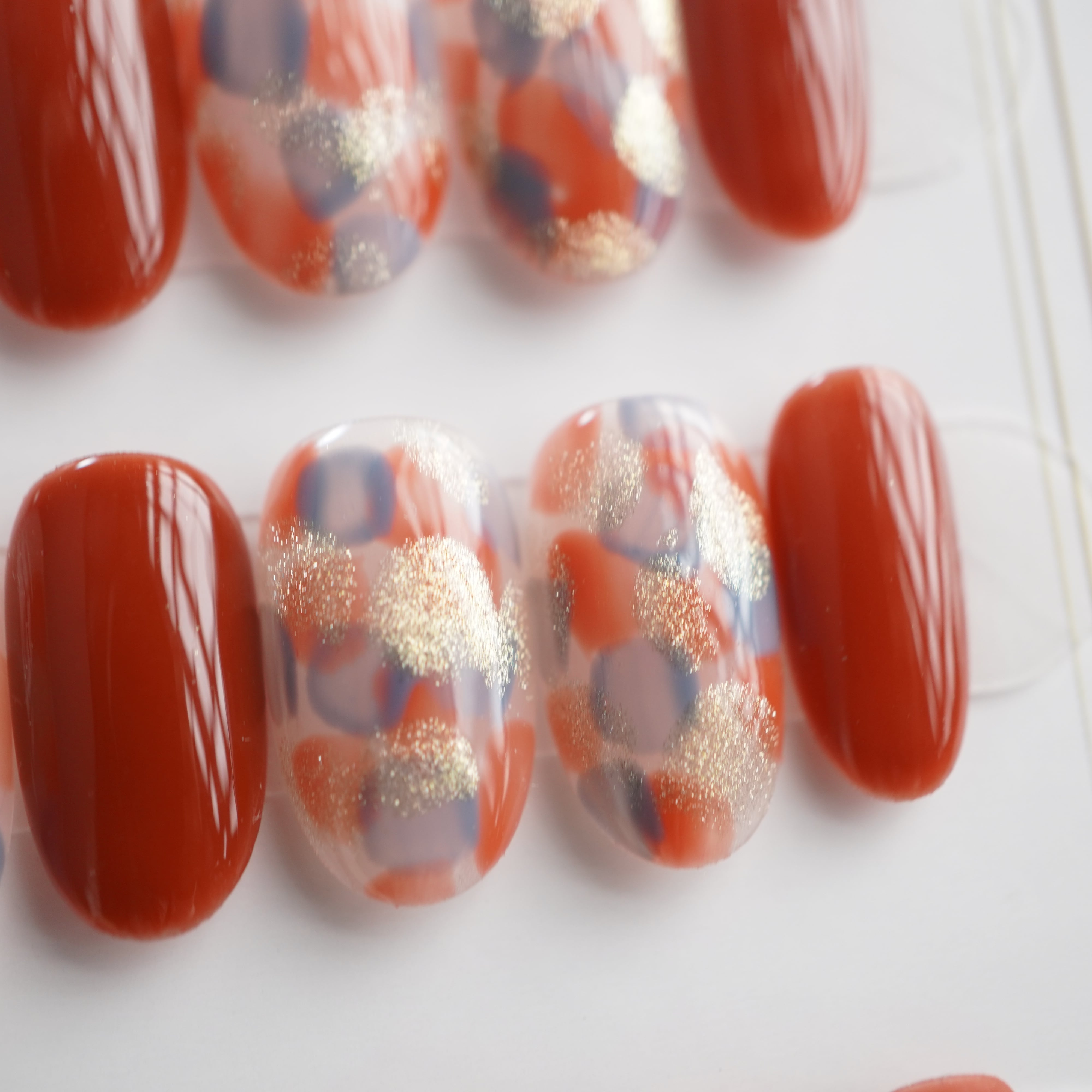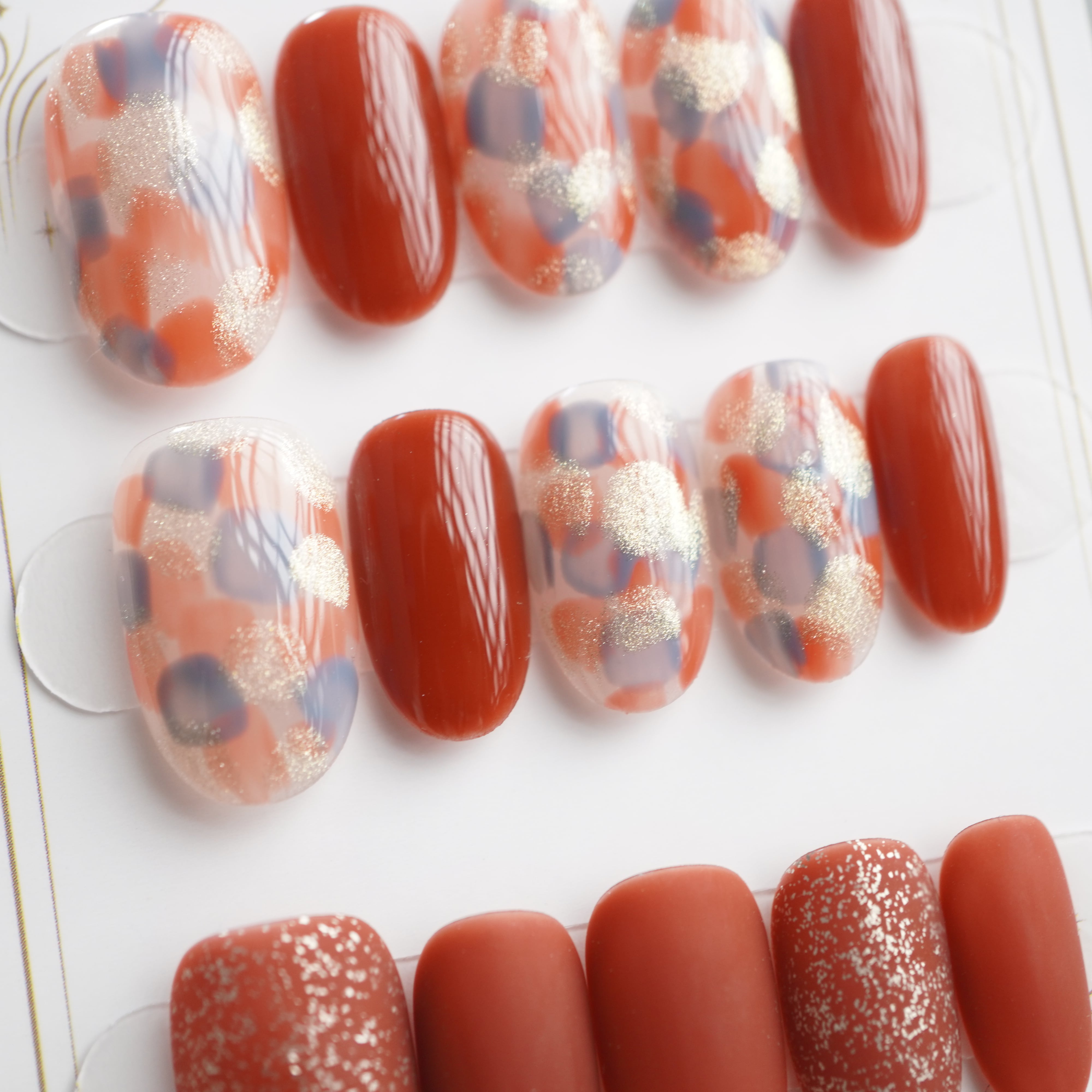 【#747】繰り返し使える【プレミアム】ネイルチップ15枚セット/ボルドー カラフル/ミディアム オーバル/XY307