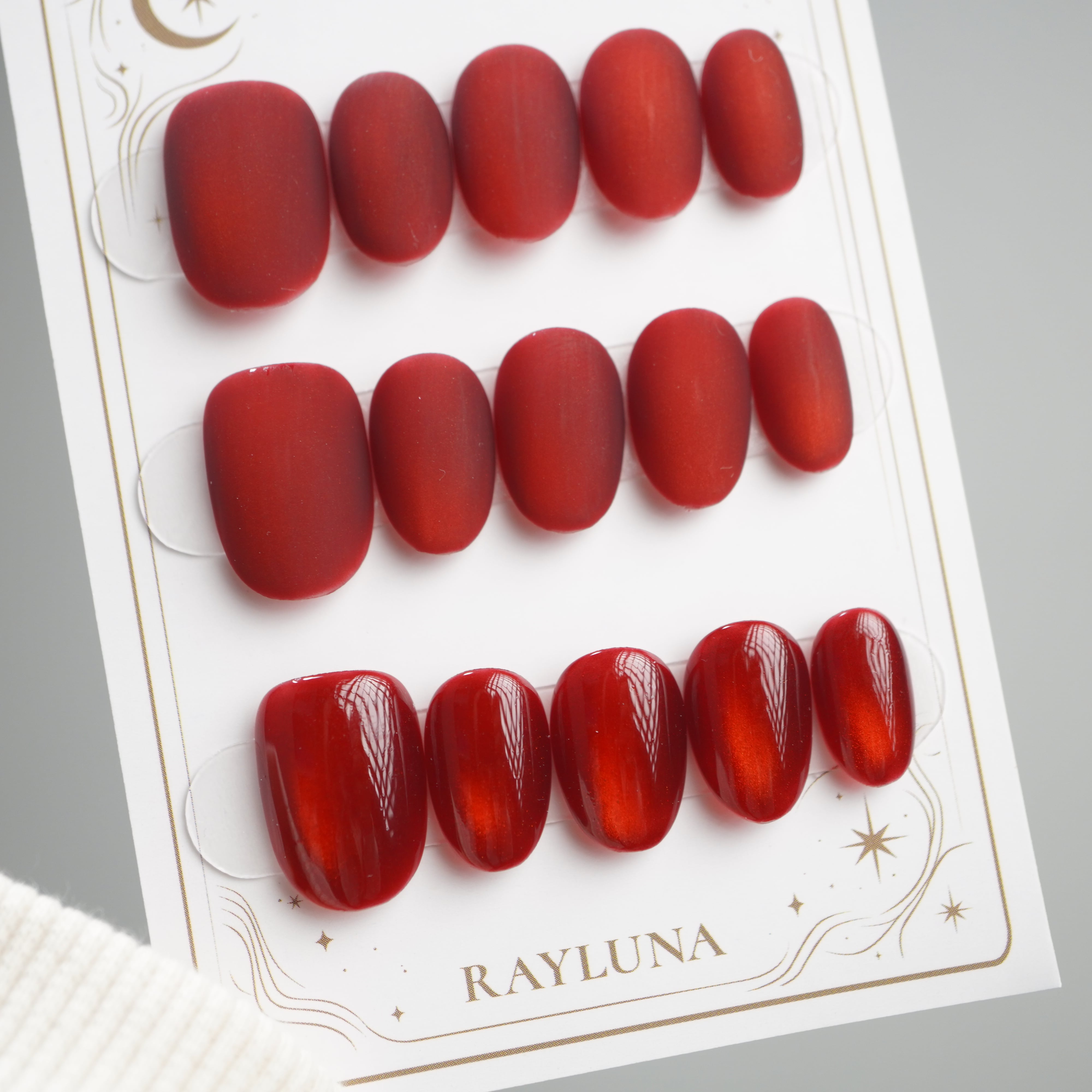 【#753】繰り返し使える【プレミアム】ネイルチップ15枚セット/ボルドー 赤/ショート アーモンド/XY313