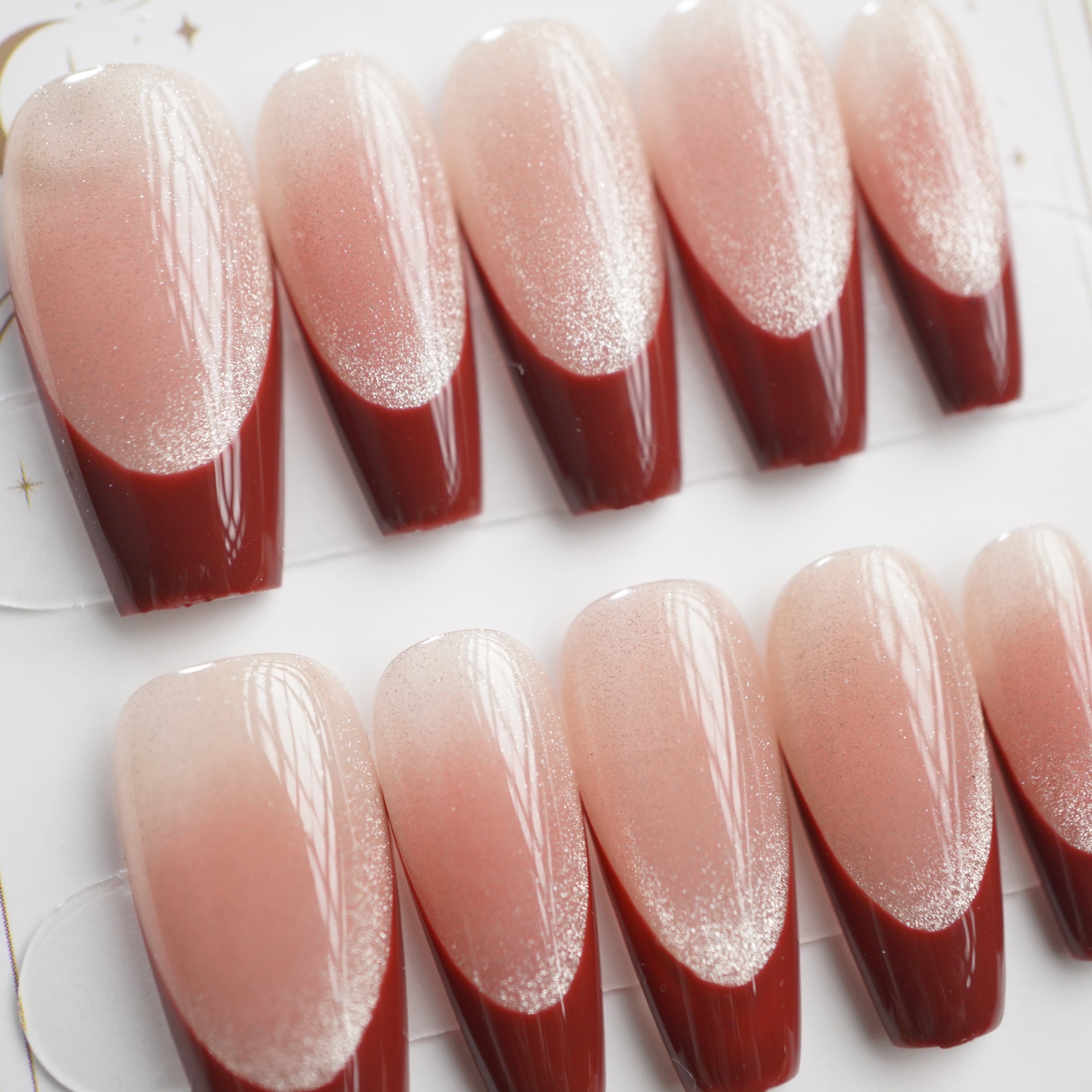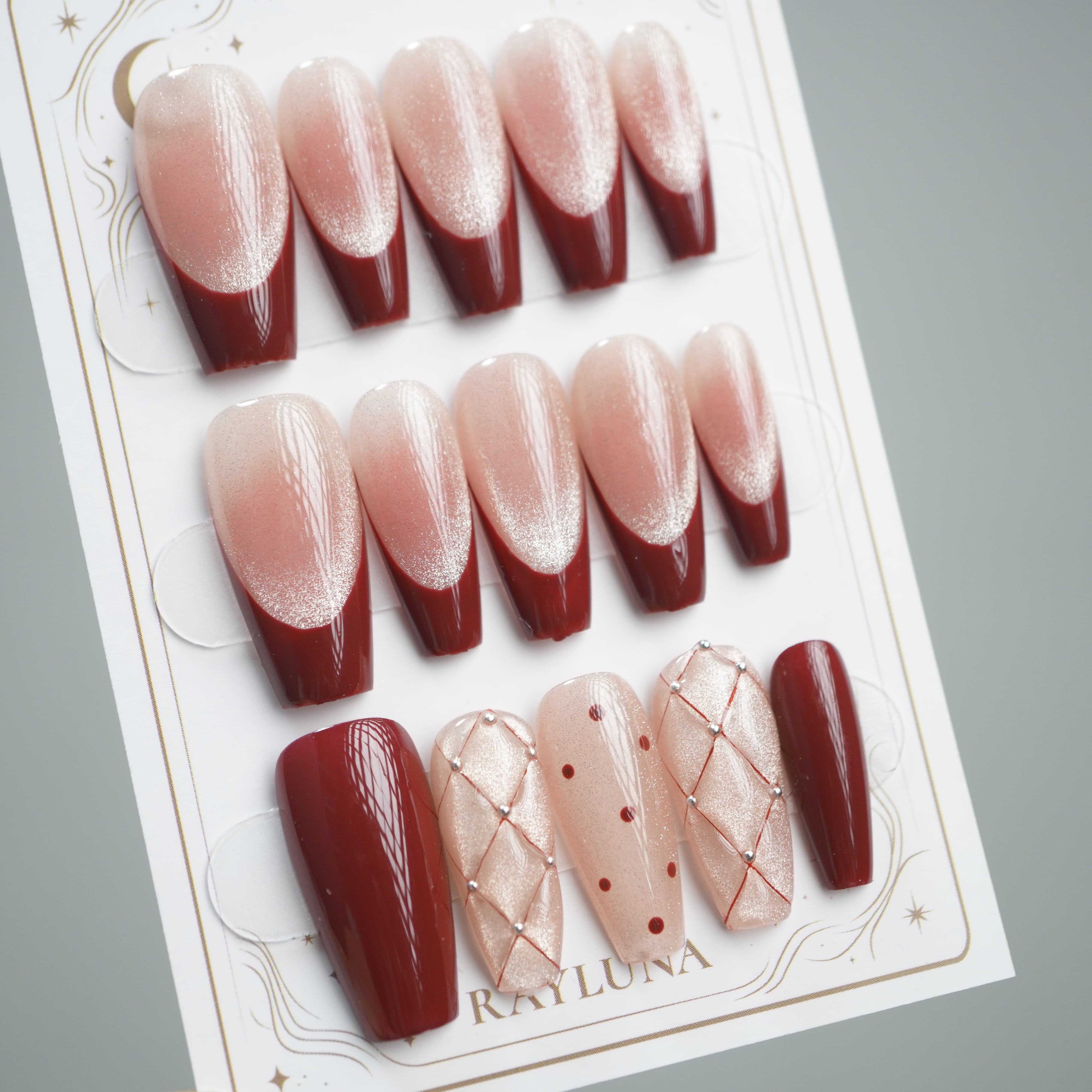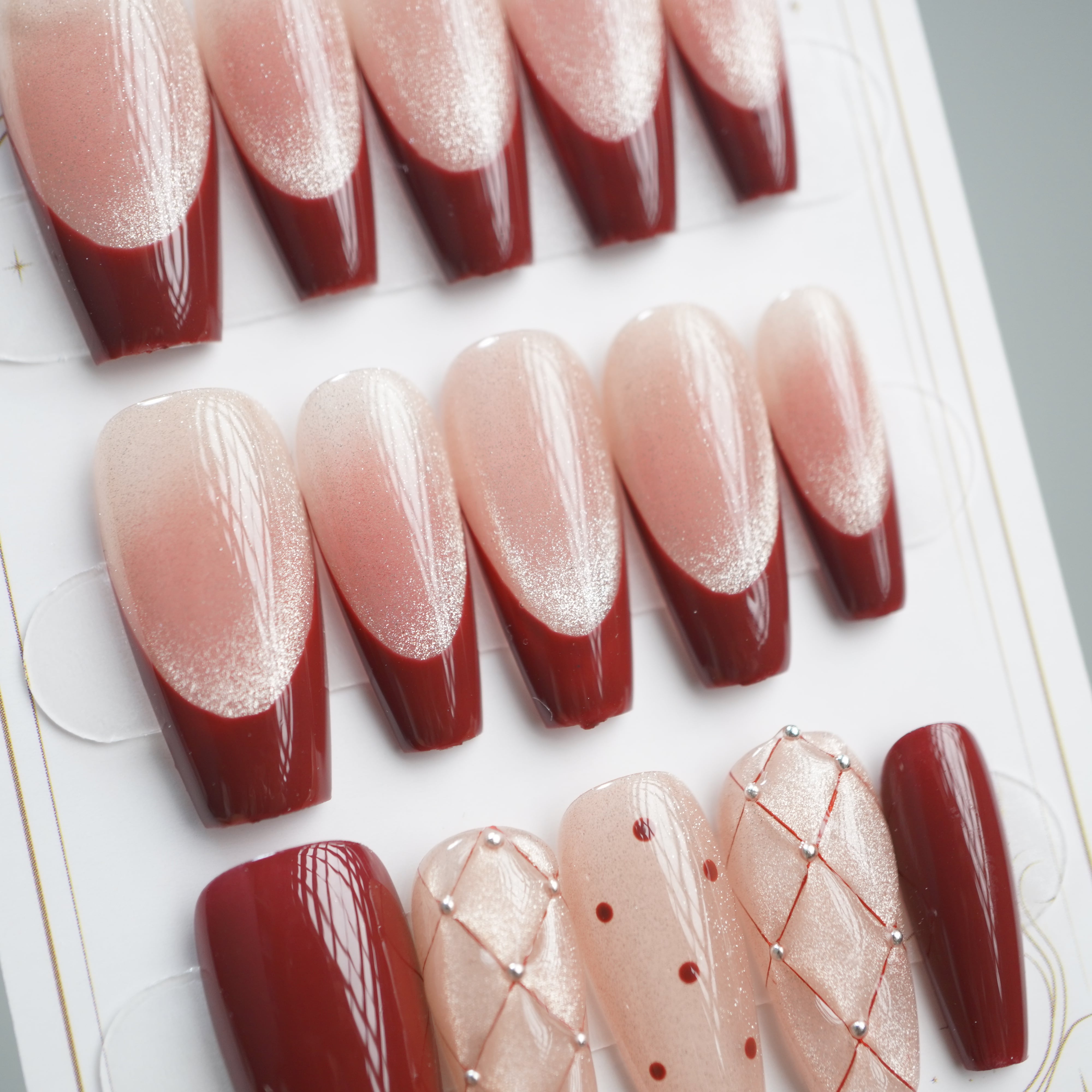 【#784】繰り返し使える【プレミアム】ネイルチップ15枚セット/赤フレンチ/ロング バレリーナ/XY344