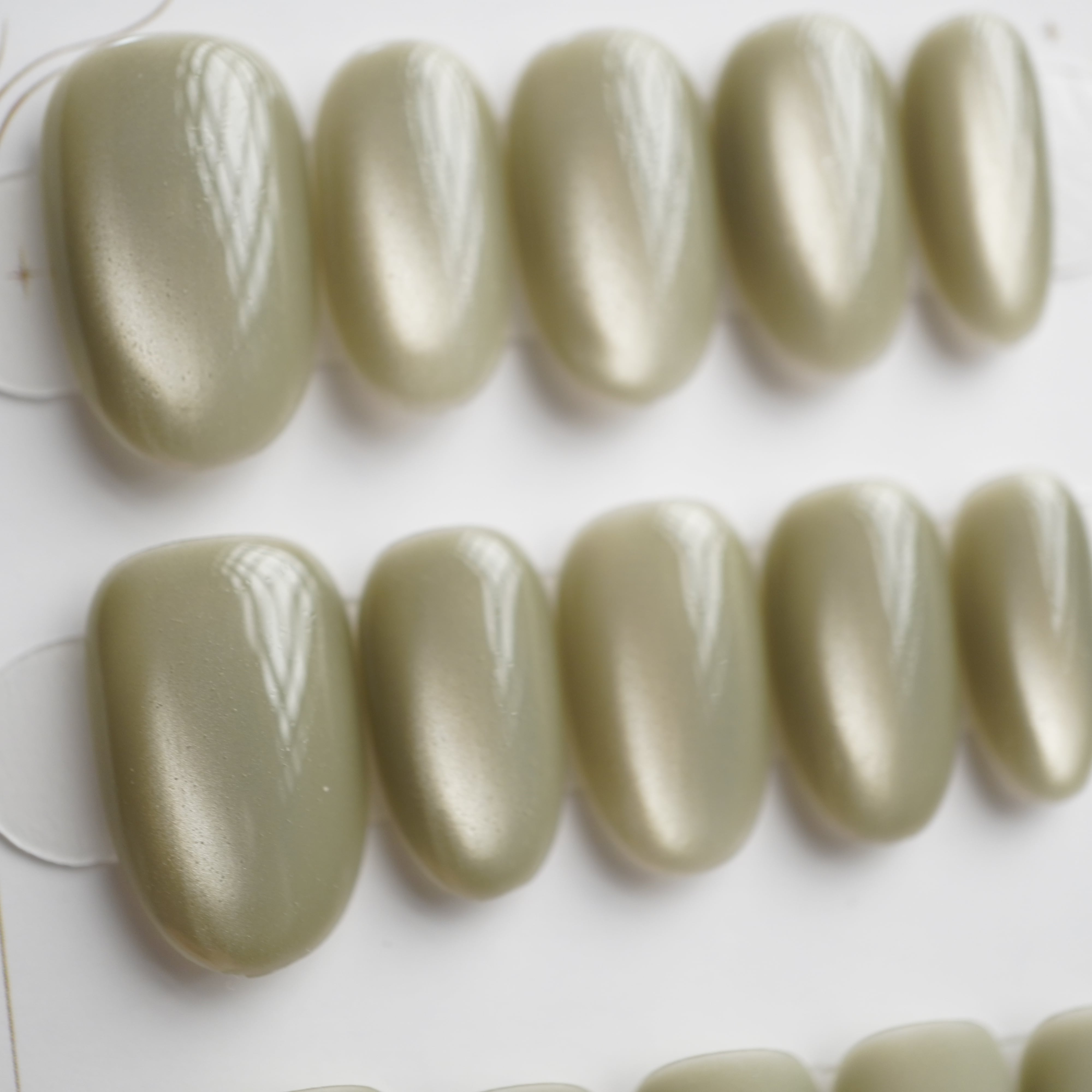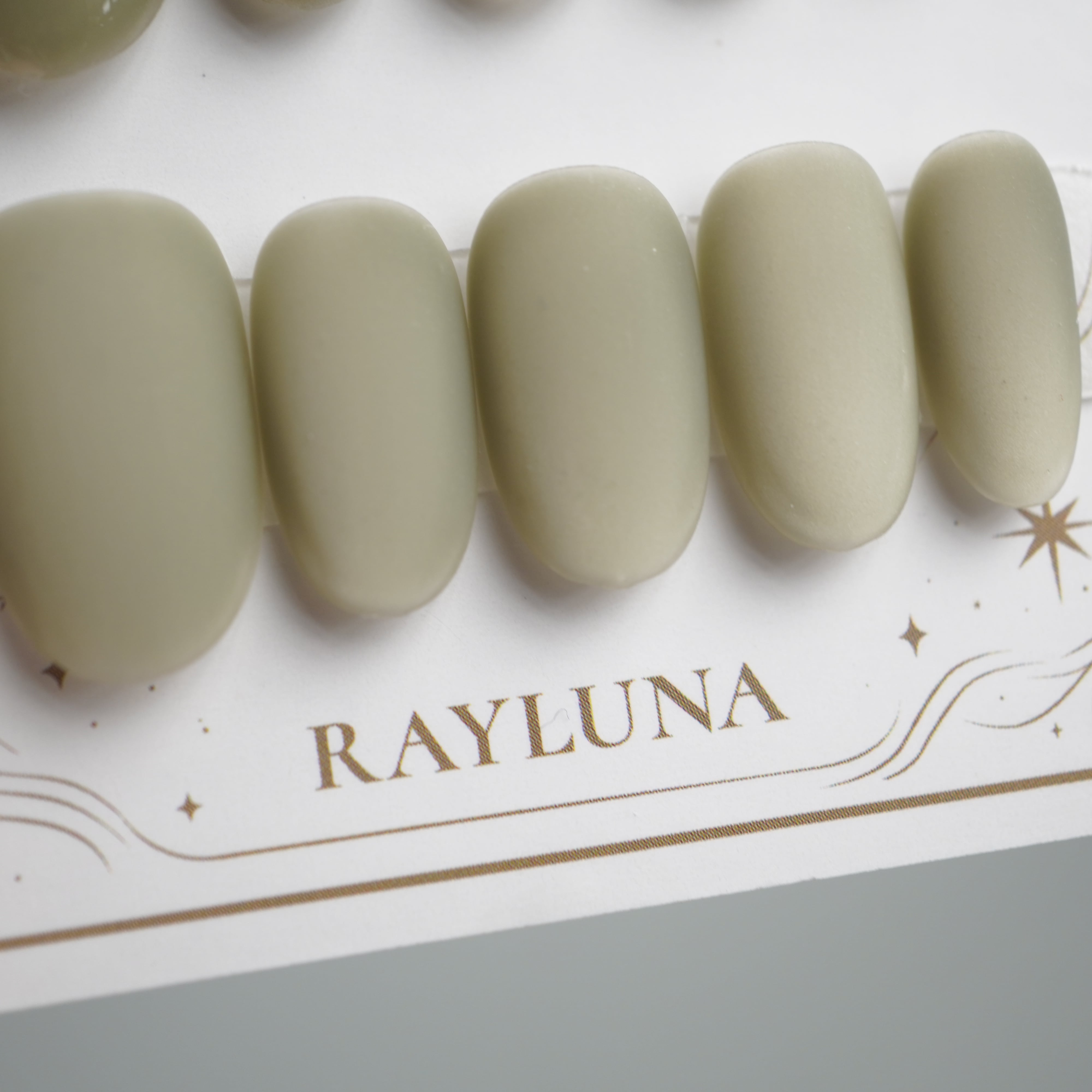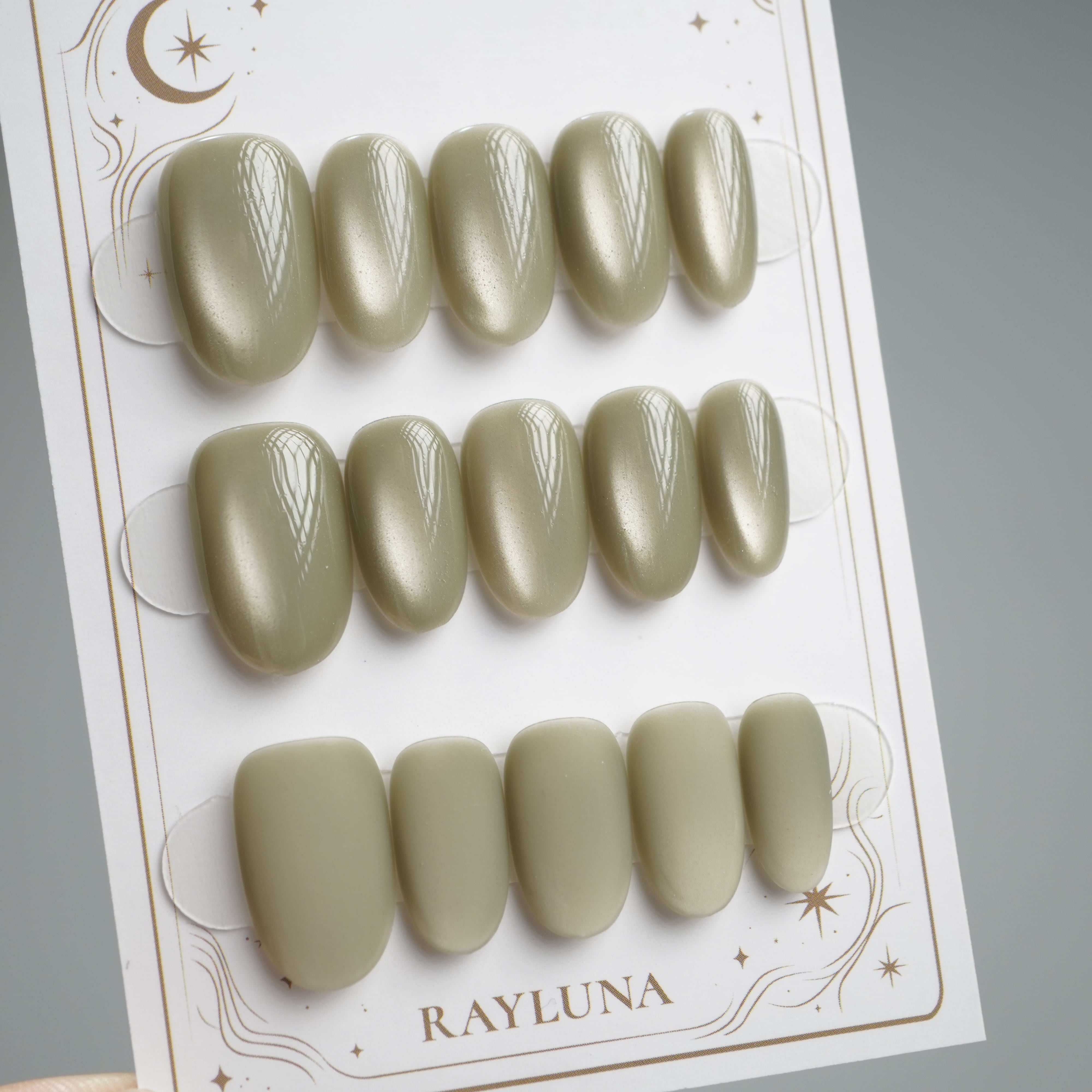 【#757】繰り返し使える【プレミアム】ネイルチップ15枚セット/グレー グリーン/ミディアム オーバル/XY317
