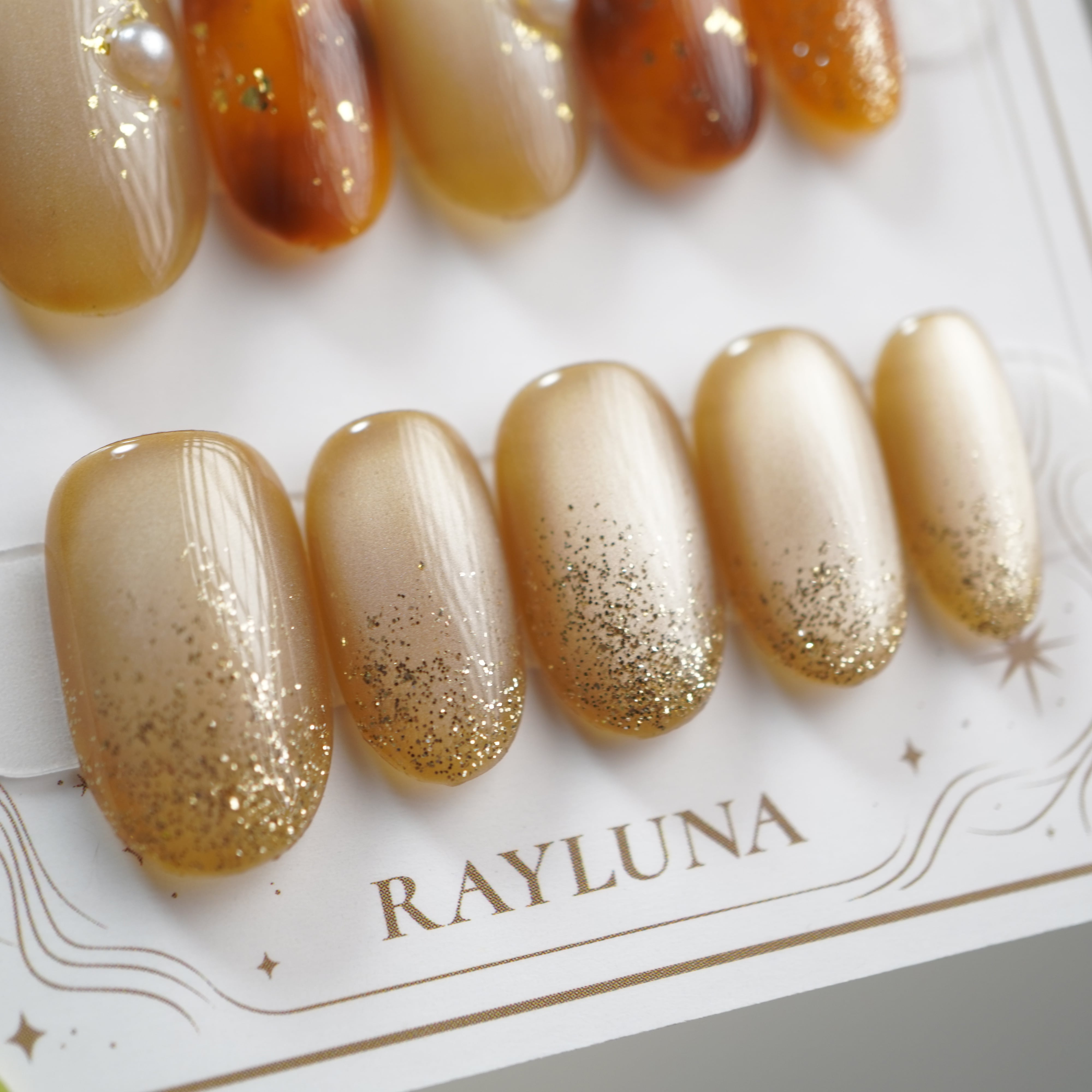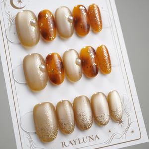 【#781】繰返し使える15枚セット【プレミアム】ネイルチップ/べっ甲色 ベージュ/ミディアム オーバル/XY341