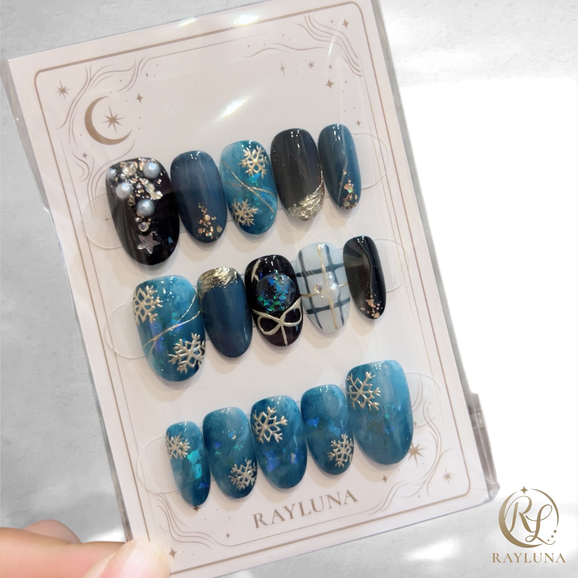 【#828】クリスマスデザイン繰返し使える15枚セット【プレミアム】ネイルチップ/パープル ホワイト/ミディアム オーバル/XY