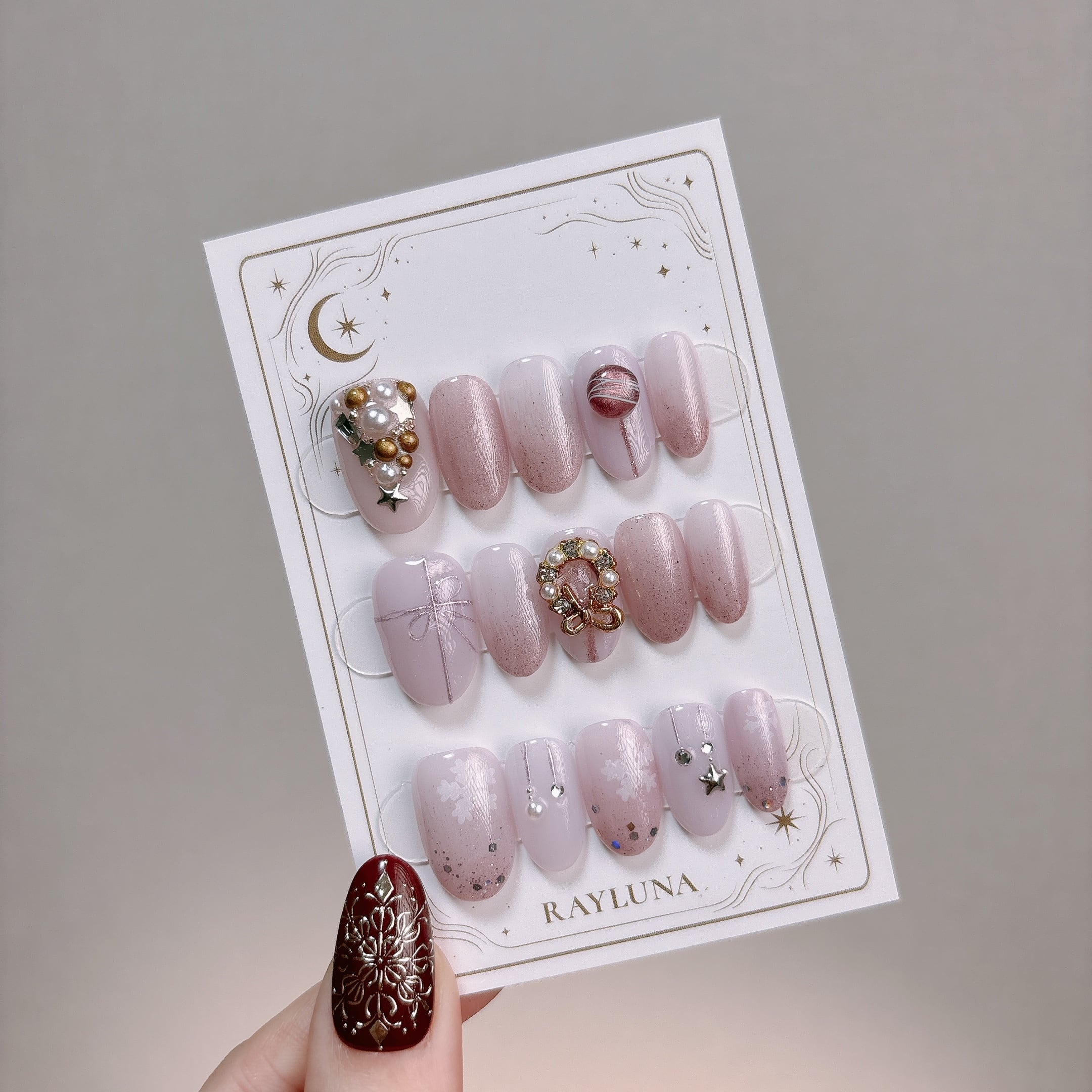 【#817】クリスマスデザイン 繰り返し使える【プレミアム】ネイルチップ15枚セット/ミディアム オーバル/XY377