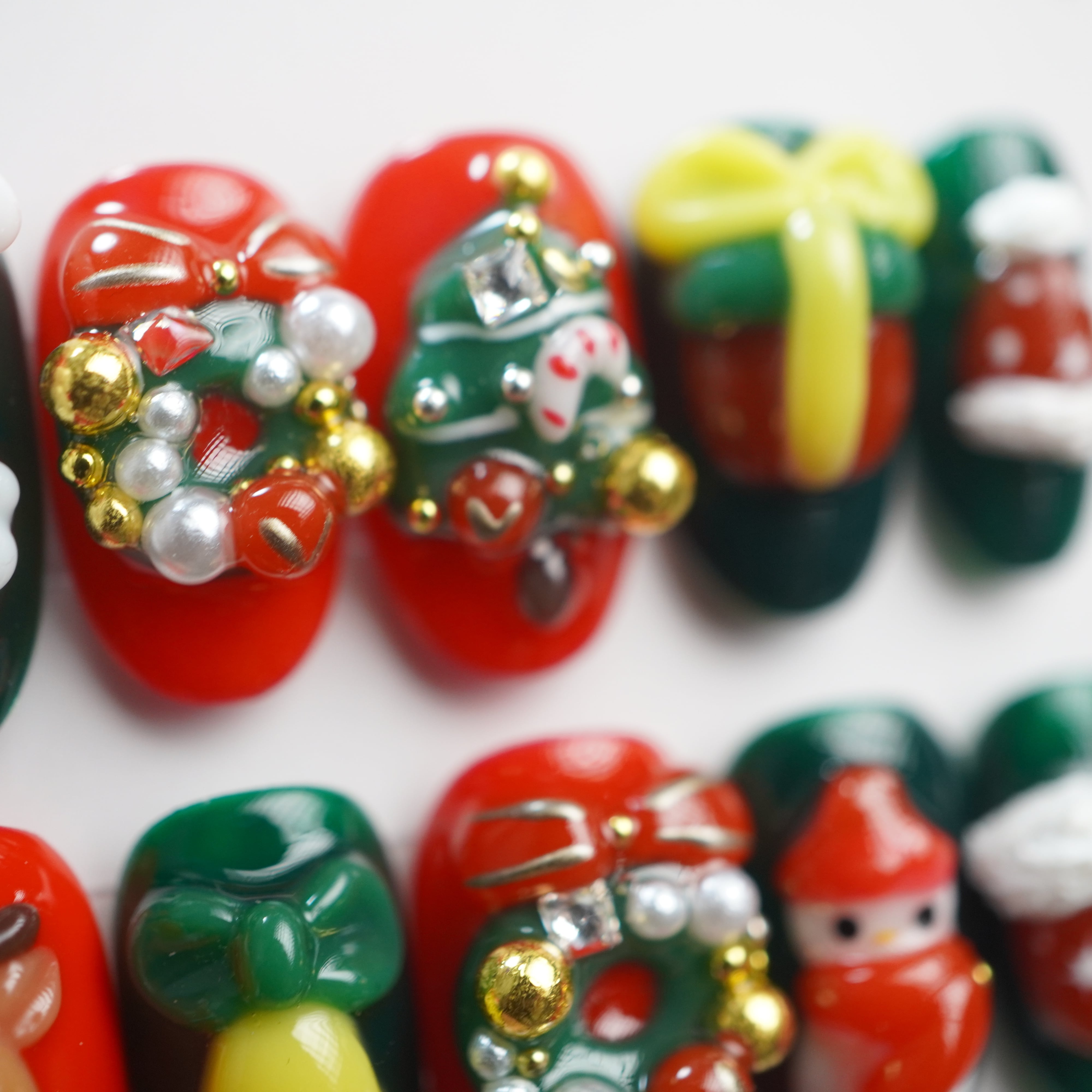 【#839】クリスマスデザイン 繰返し使える10枚セット【プレミアム】ネイルチップ/ホワイト レッド/ミディアム オーバル/XY399