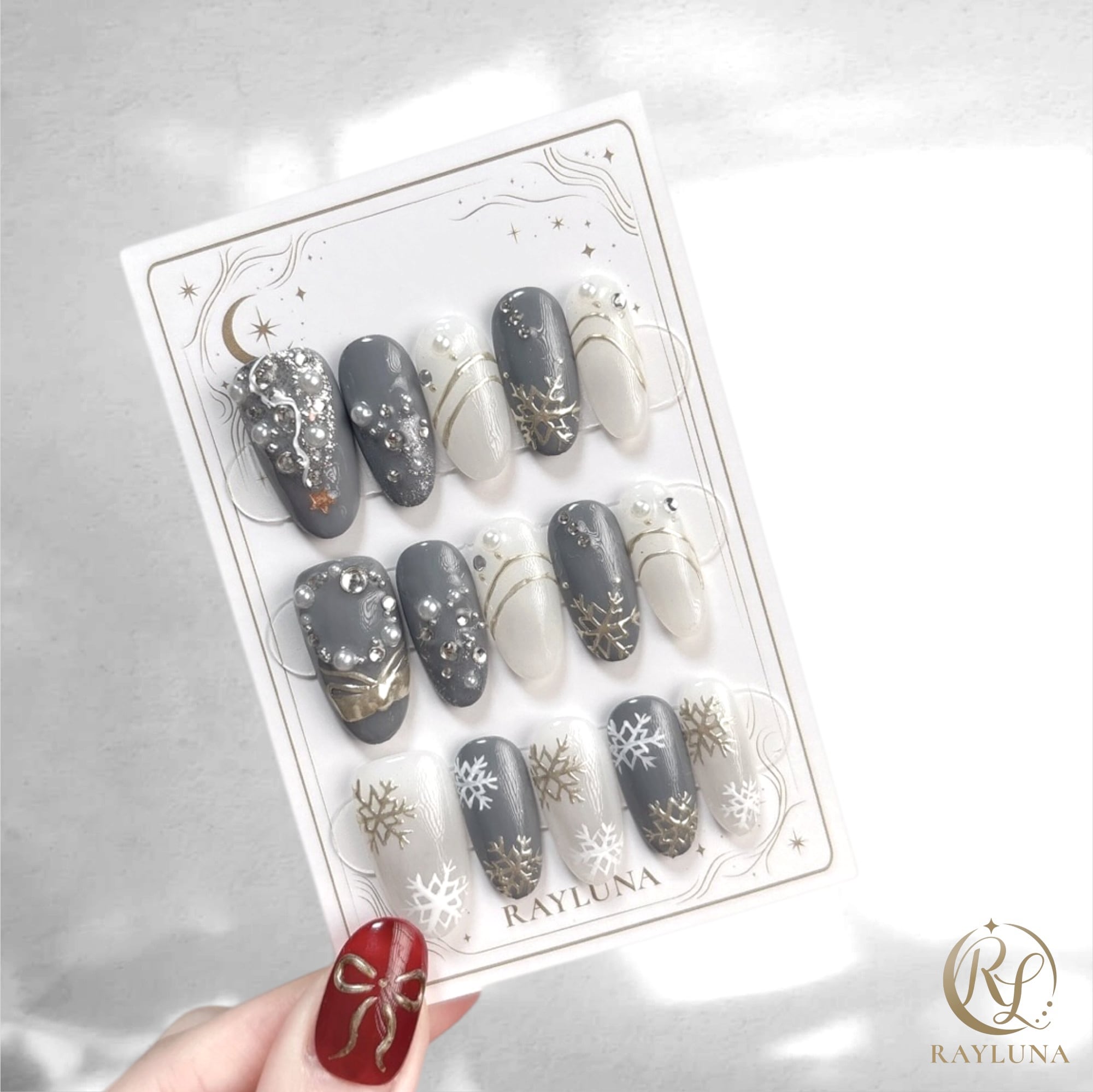 【#857】クリスマスデザイン繰り返し使える【プレミアム】ネイルチップ15枚セット/ロング オーバル/XY417