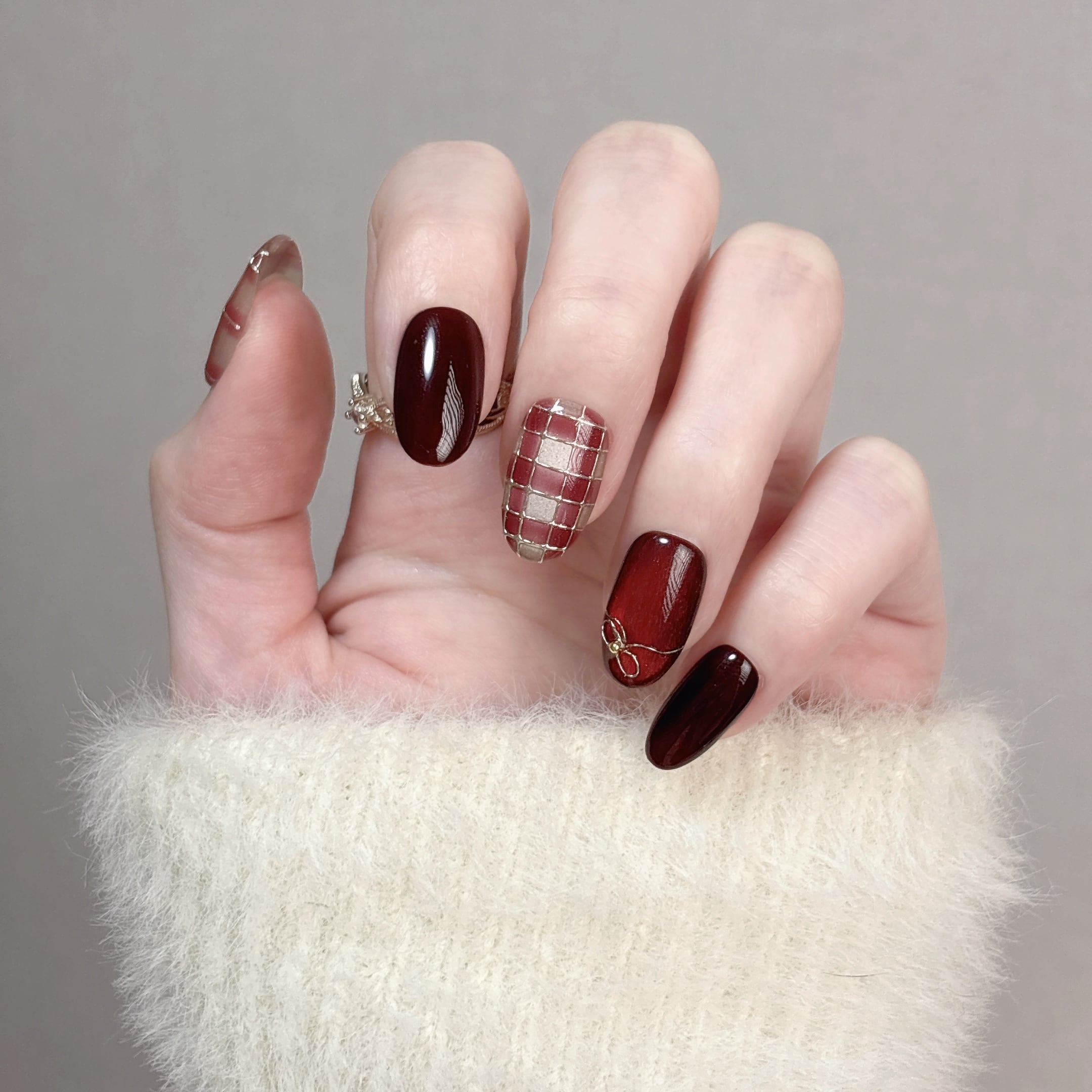 【#860】繰り返し使える【プレミアム】ネイルチップ15枚セット/ミディアム オーバル/XY420