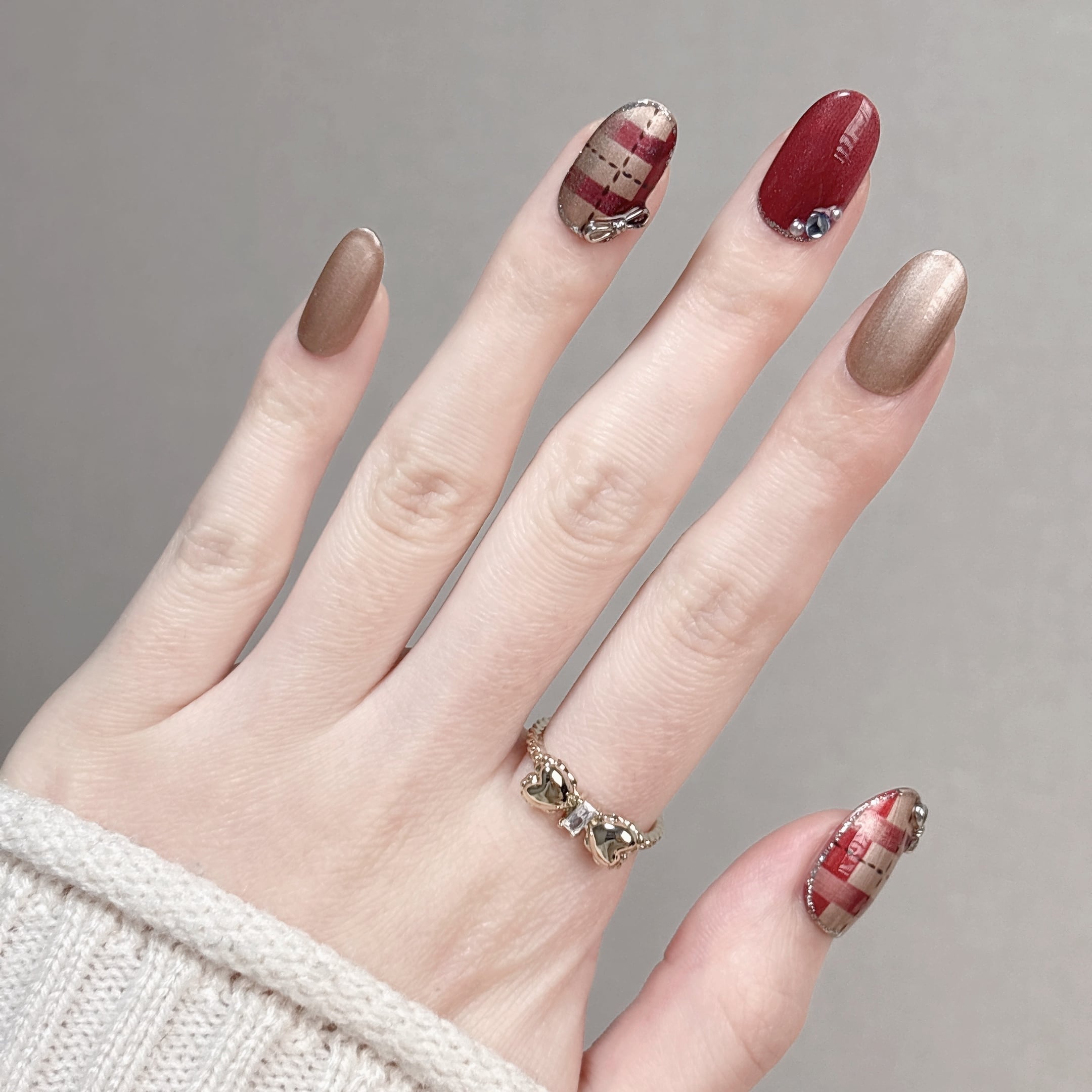 【#870】繰り返し使える【プレミアム】ネイルチップ15枚セット/ミディアム オーバル/XY430