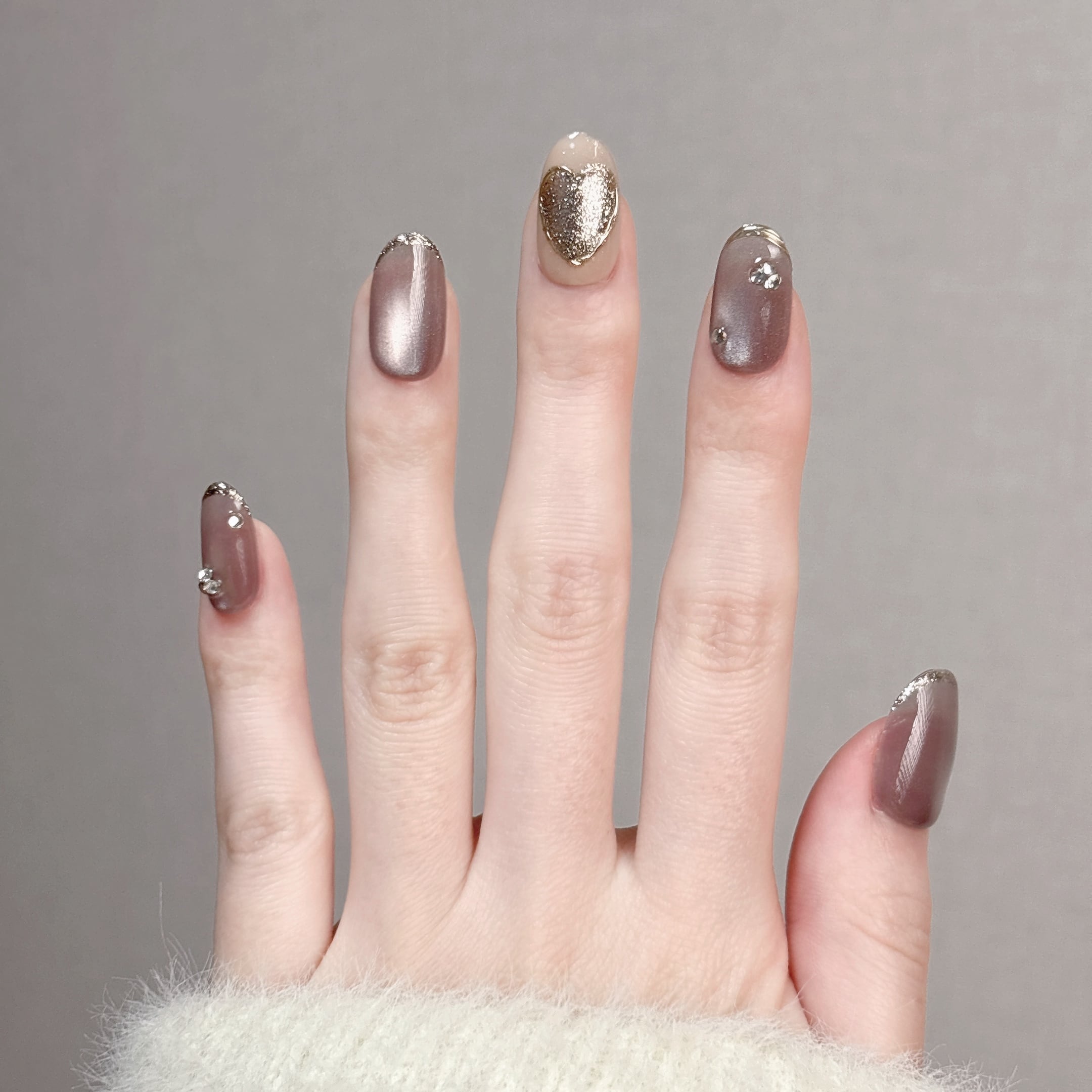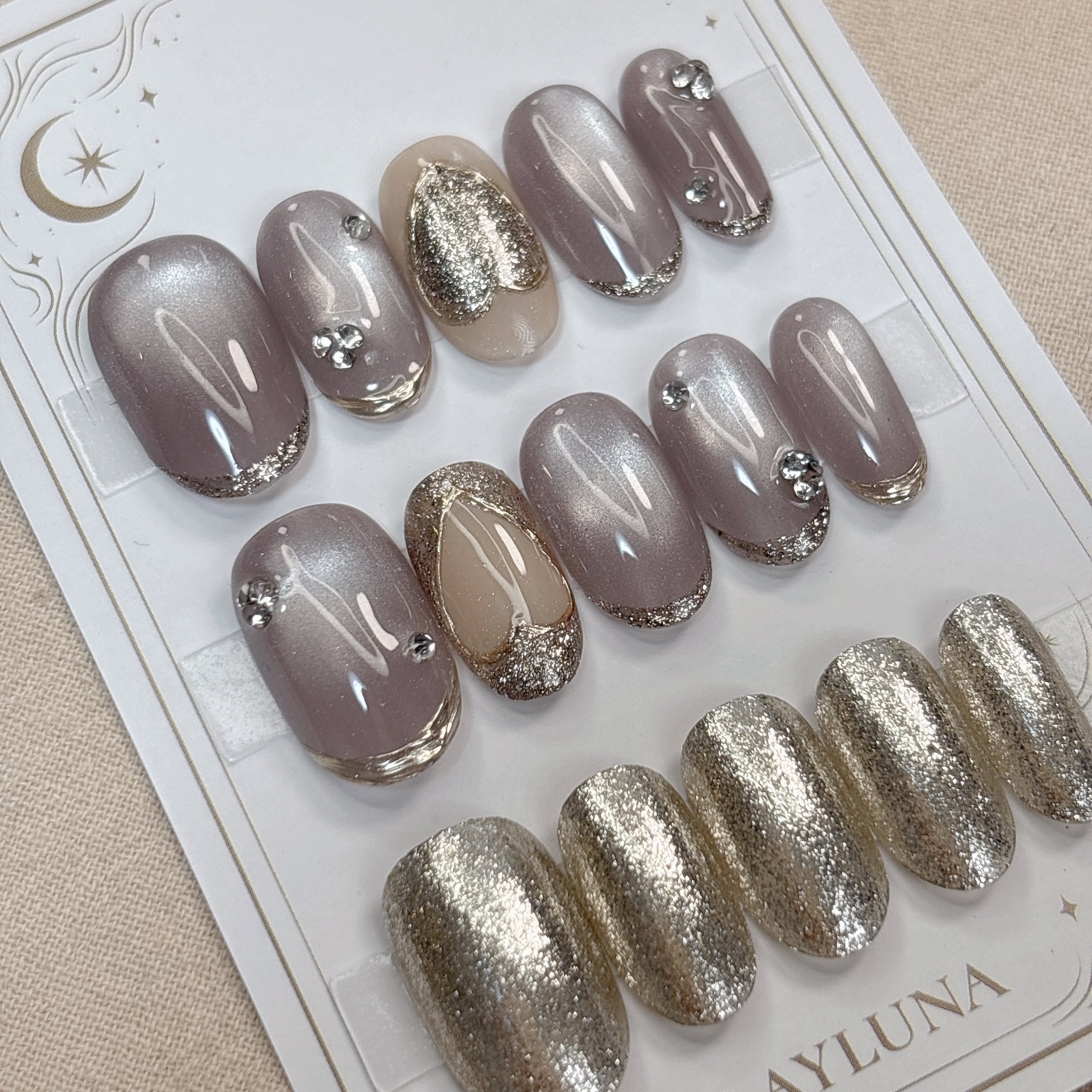 【#864】繰り返し使える【プレミアム】ネイルチップ15枚セット/ミディアム オーバル/XY424