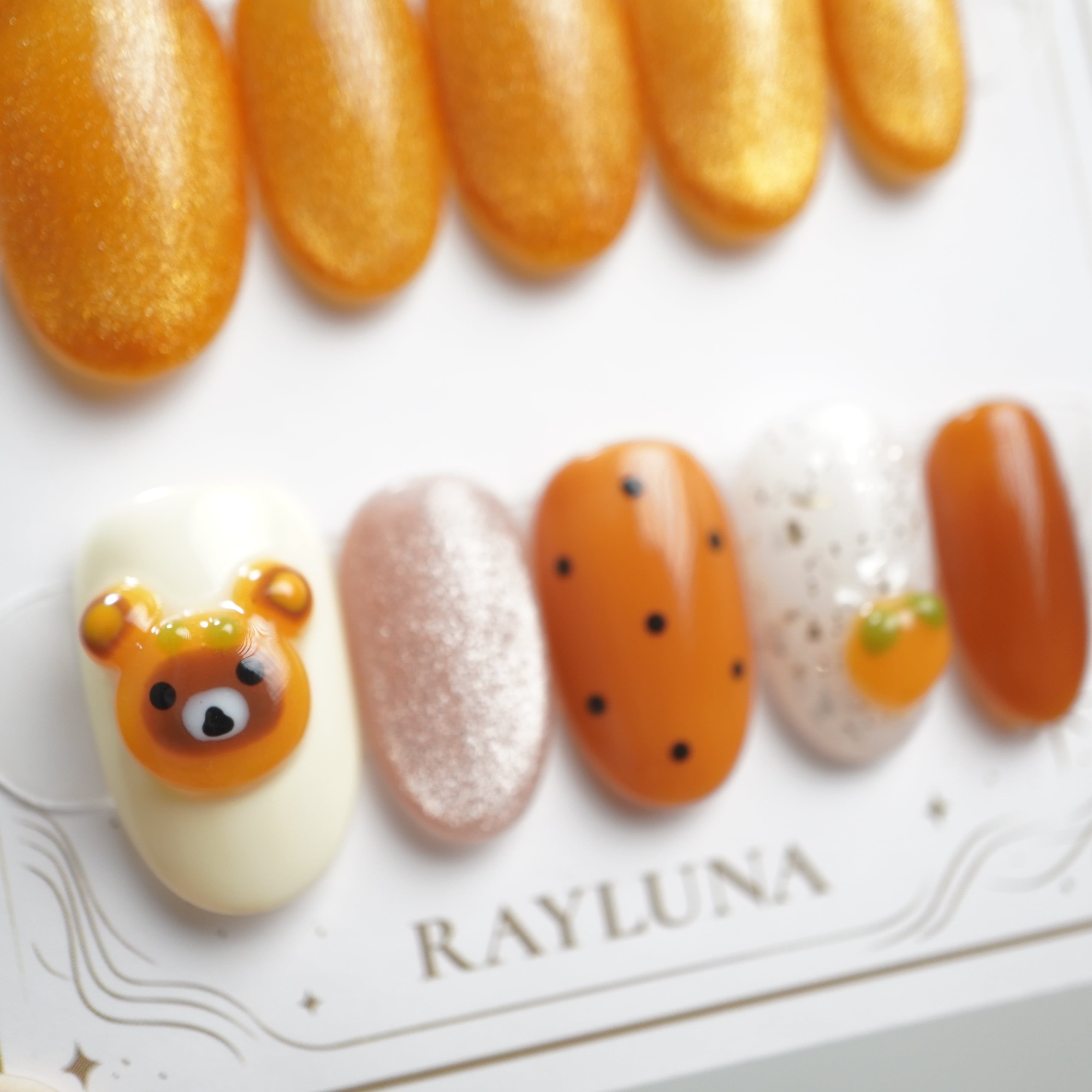【#880】繰返し使える15枚セット【プレミアム】ネイルチップ/たぬっくま/ミディアム オーバル/XY880