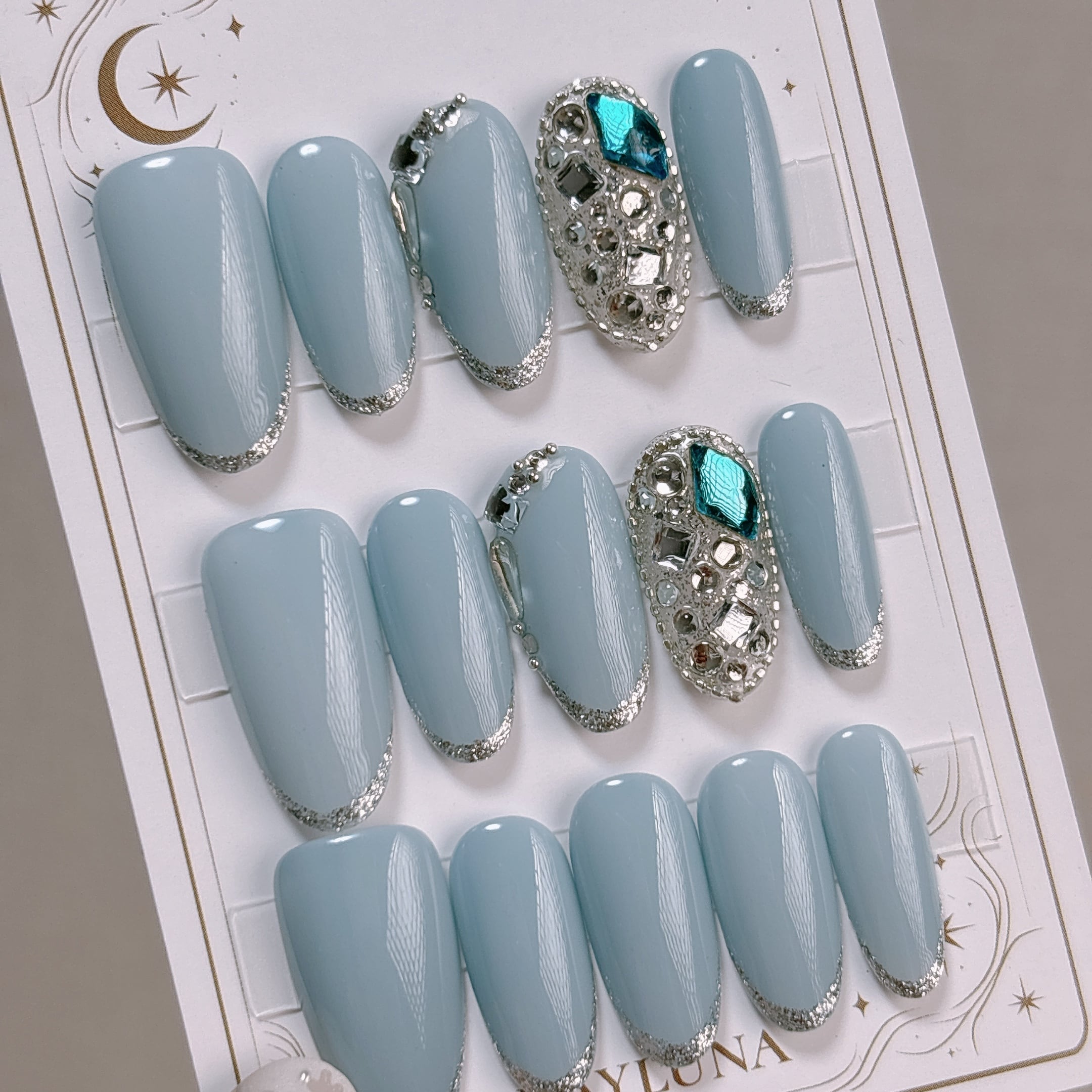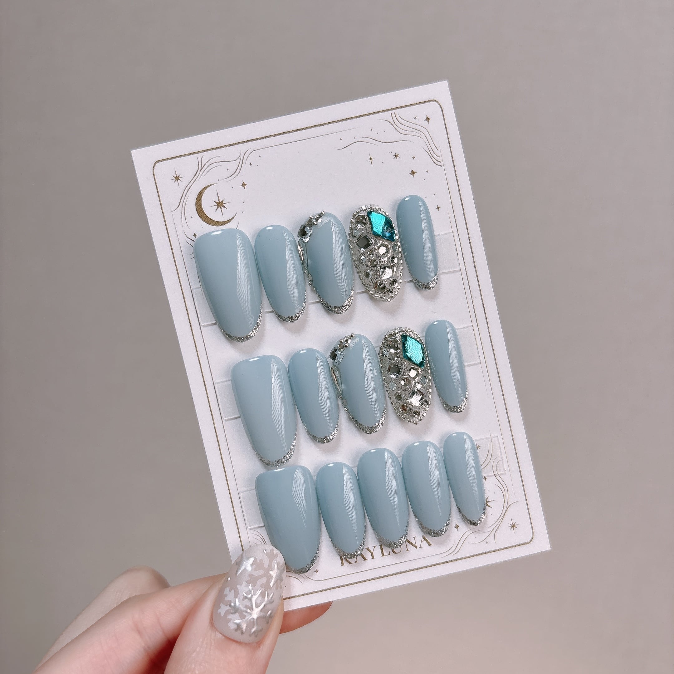 【#863】繰り返し使える【プレミアム】ネイルチップ15枚セット/ロング オーバル/XY423