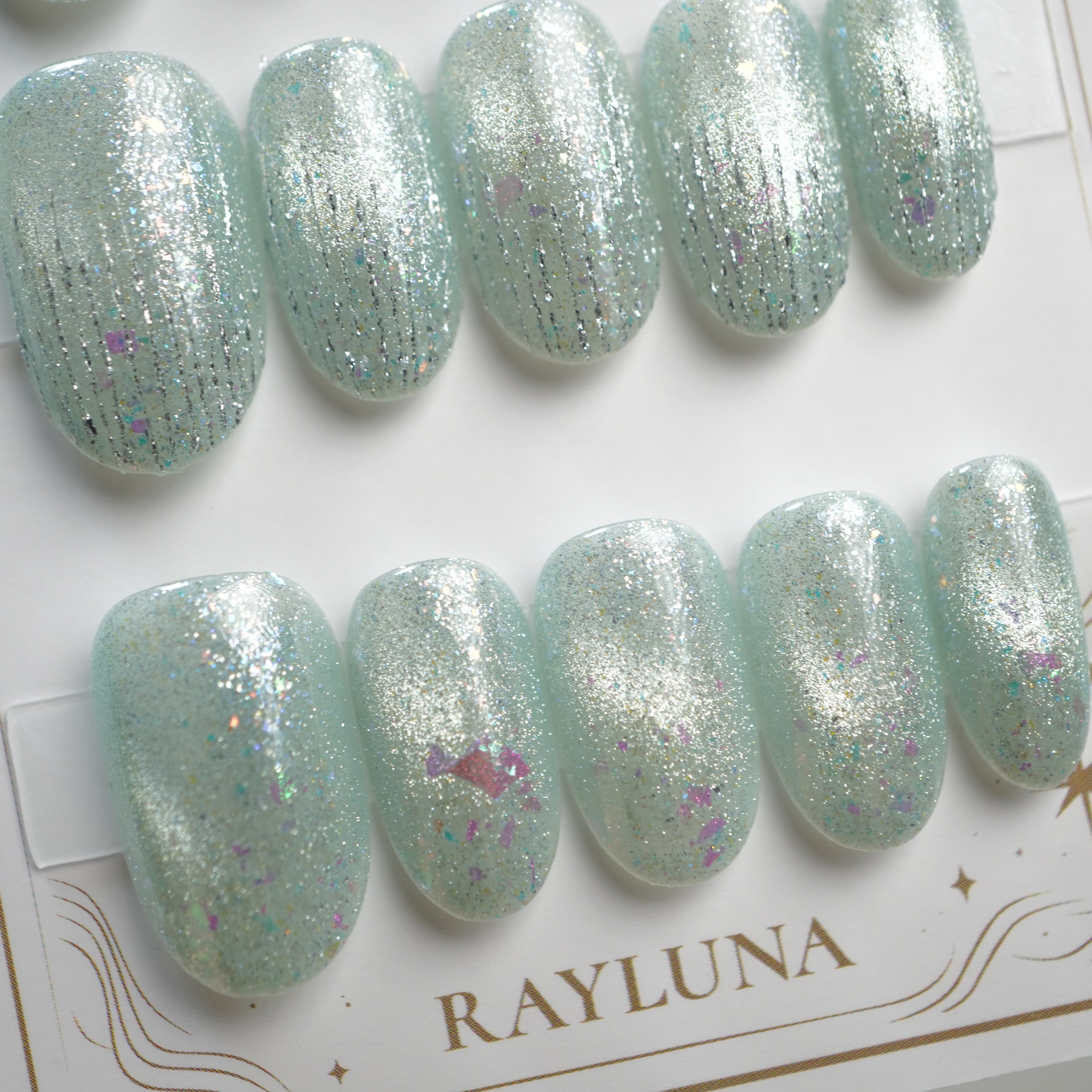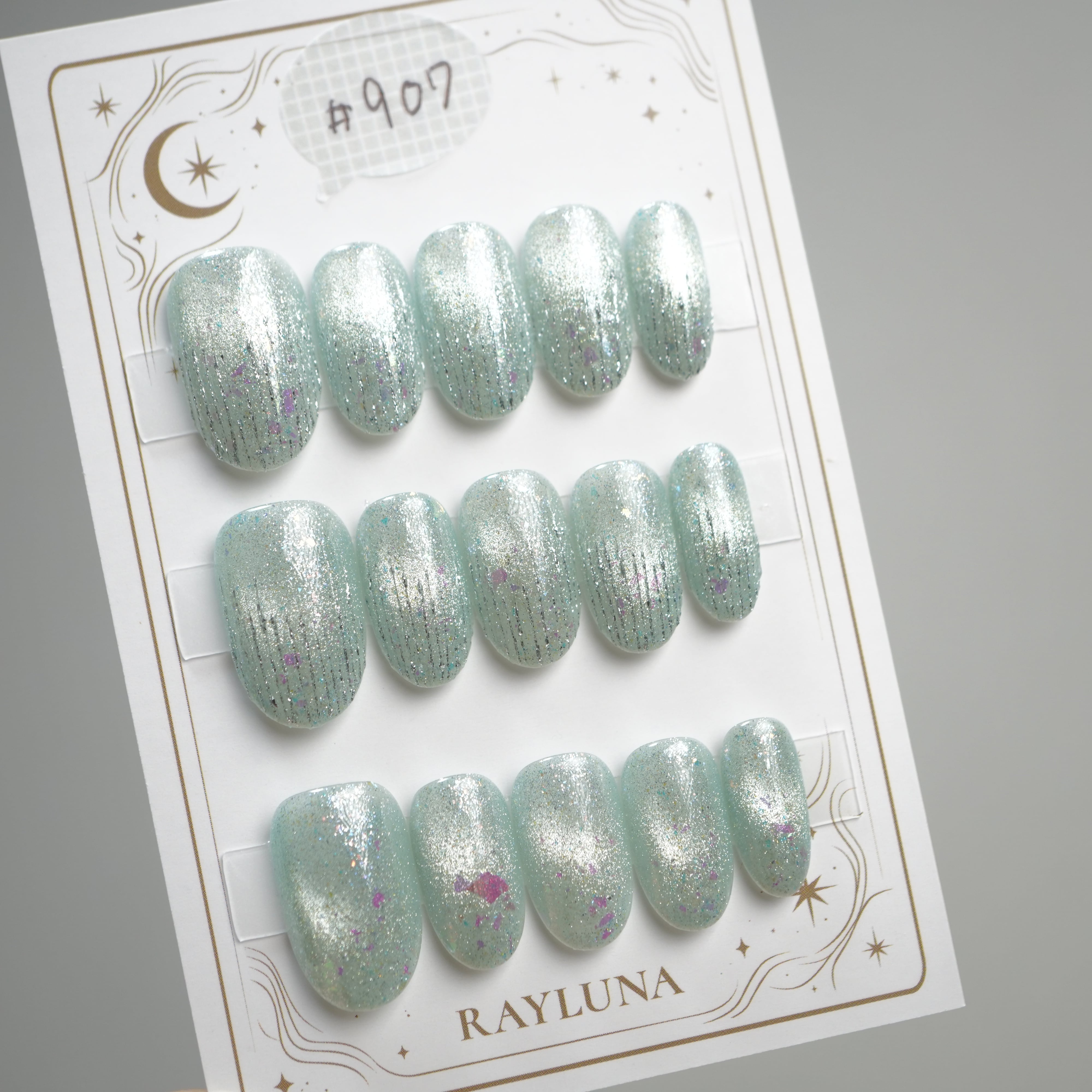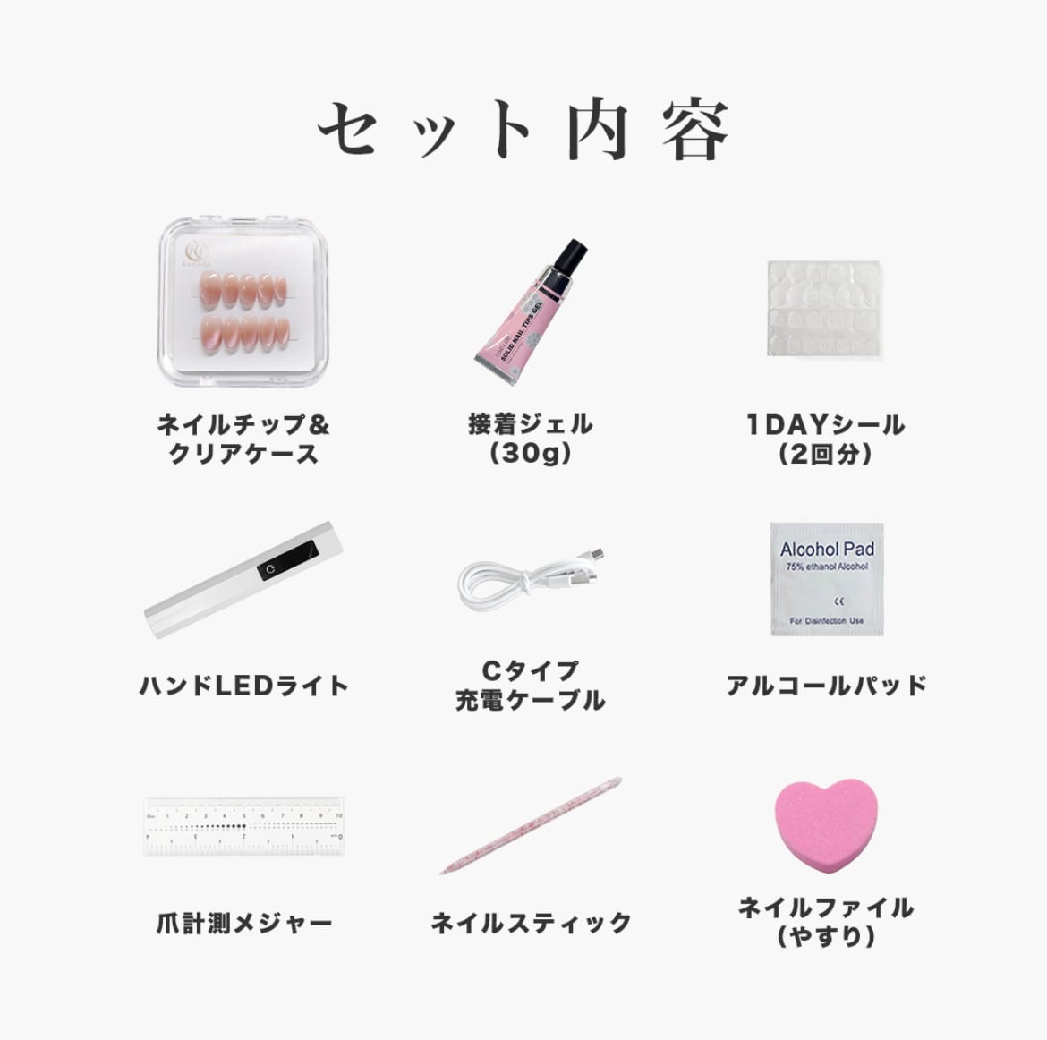 【控えめグリーン】スターターキット(選べるチップ付) 繰り返し使え長持ちするネイルチップのスターターフルキット(ネイルチップ+練習チップ+繰り返し使える接着ジェル+接着ライト1本+アルコール空ボトル)★ネイルチップを2種類から選べる/#907 #906