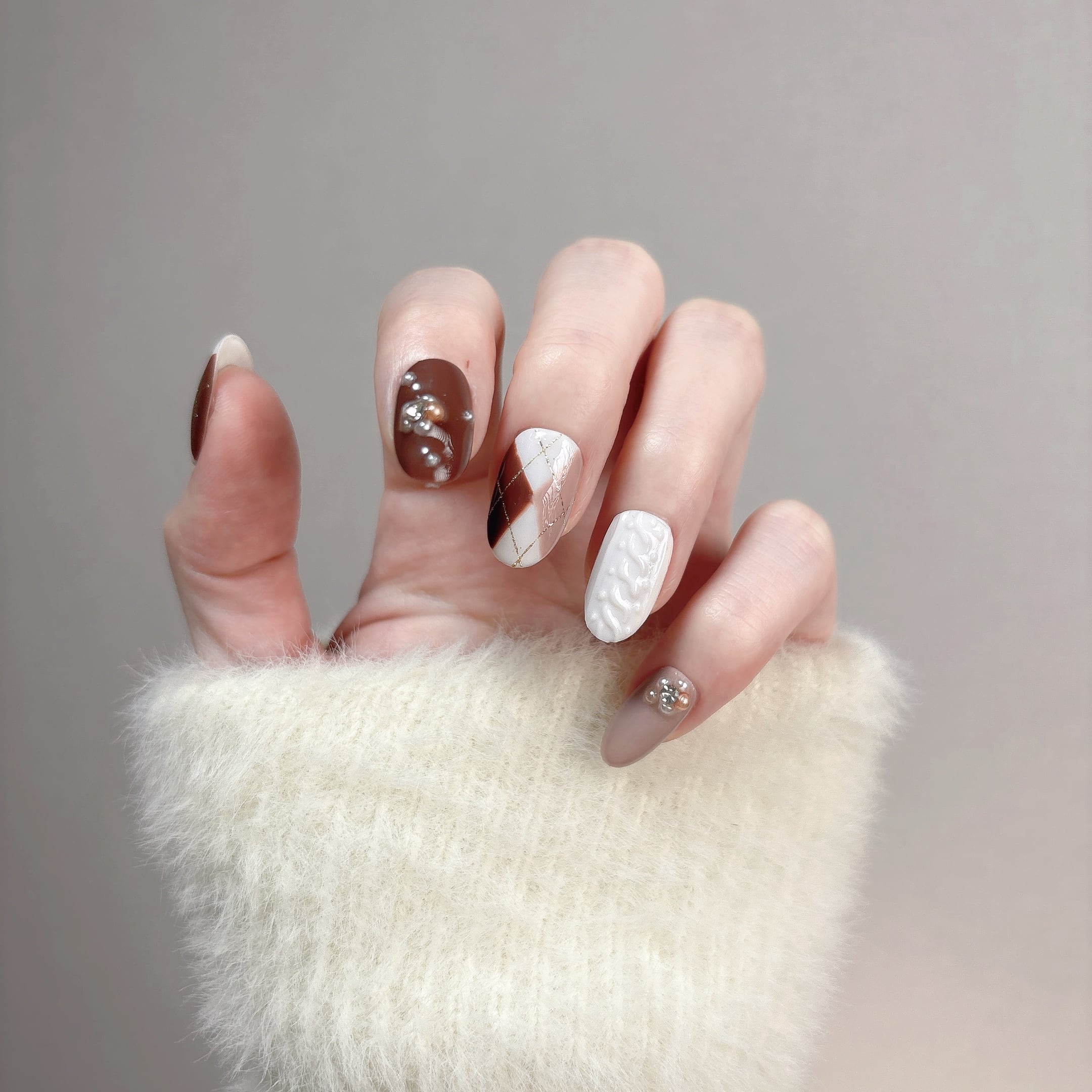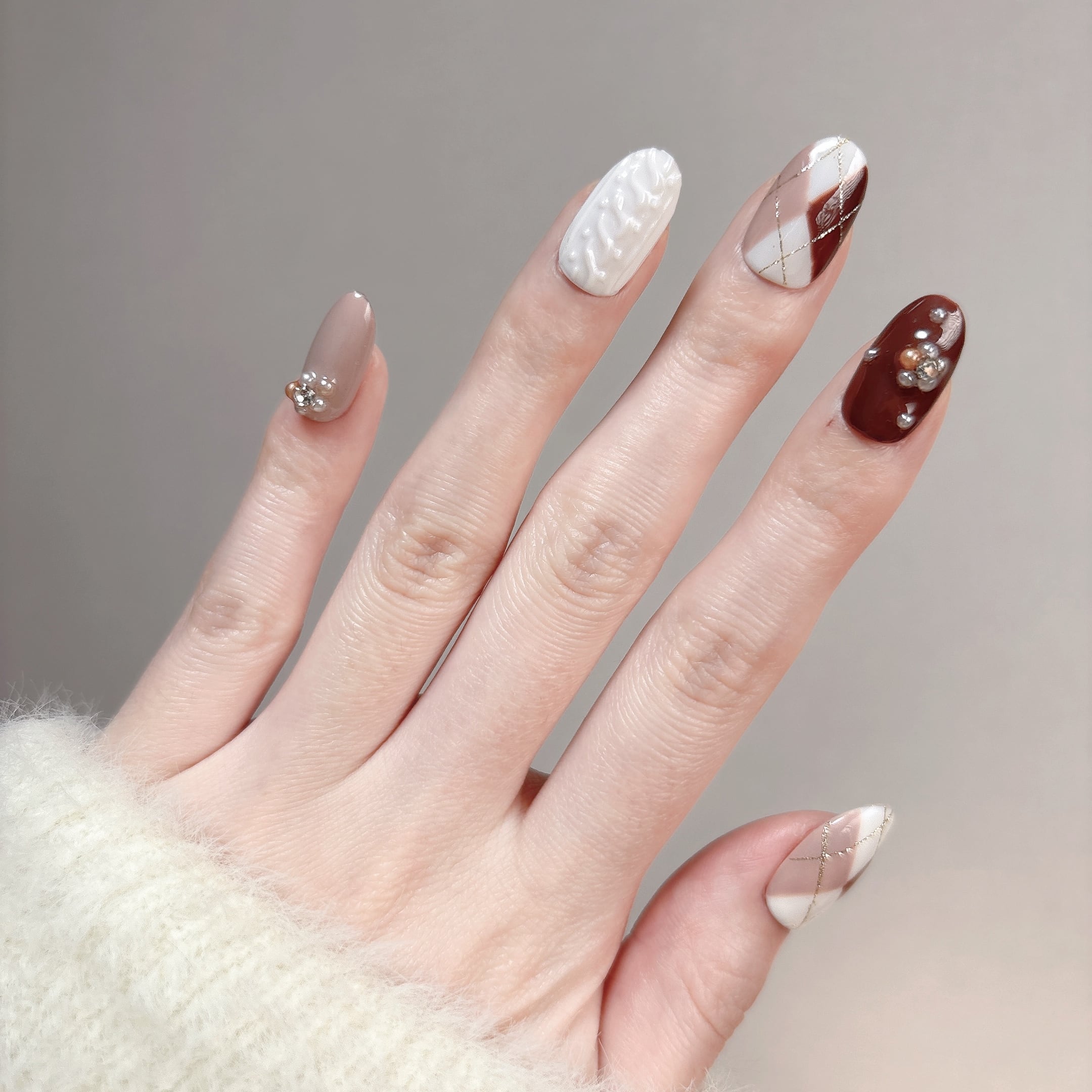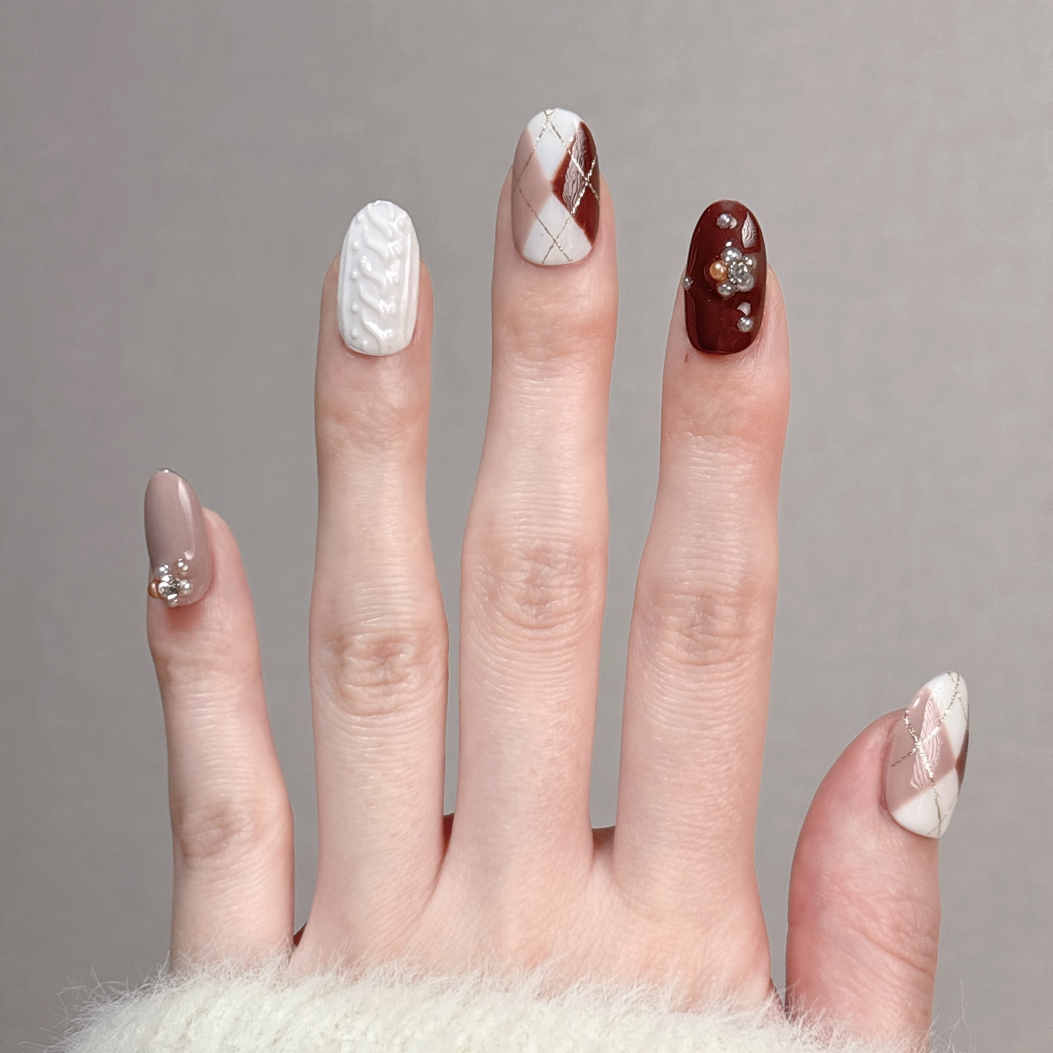 【#883】繰り返し使える【プレミアム】ネイルチップ15枚セット/ミディアム オーバル/XY443