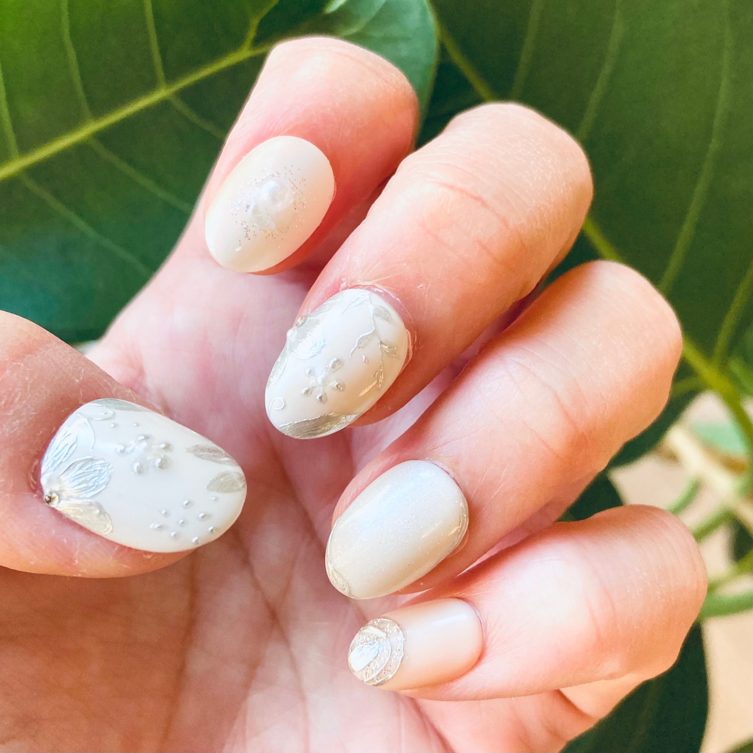 【#942】繰返し使える15枚セット【プレミアム】ネイルチップ/ピーチ ホワイト/ショートアーモンド/XY502