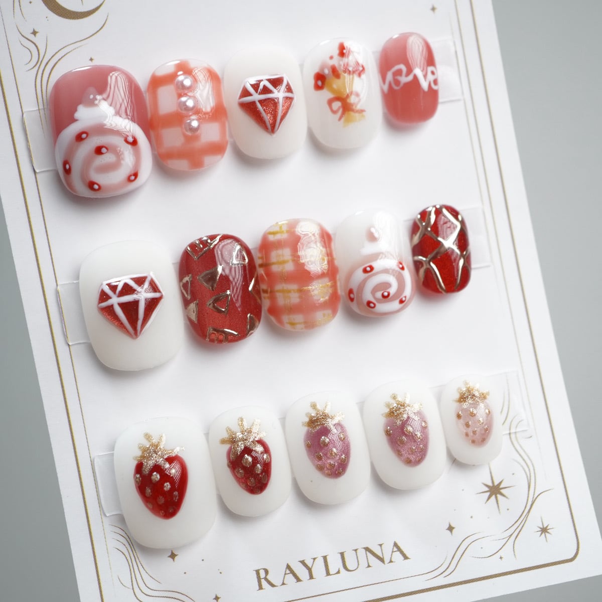 【#760】繰返し使える15枚セット【バレンタインデザイン】ネイルチップ//ベリーショート オーバル/XY
