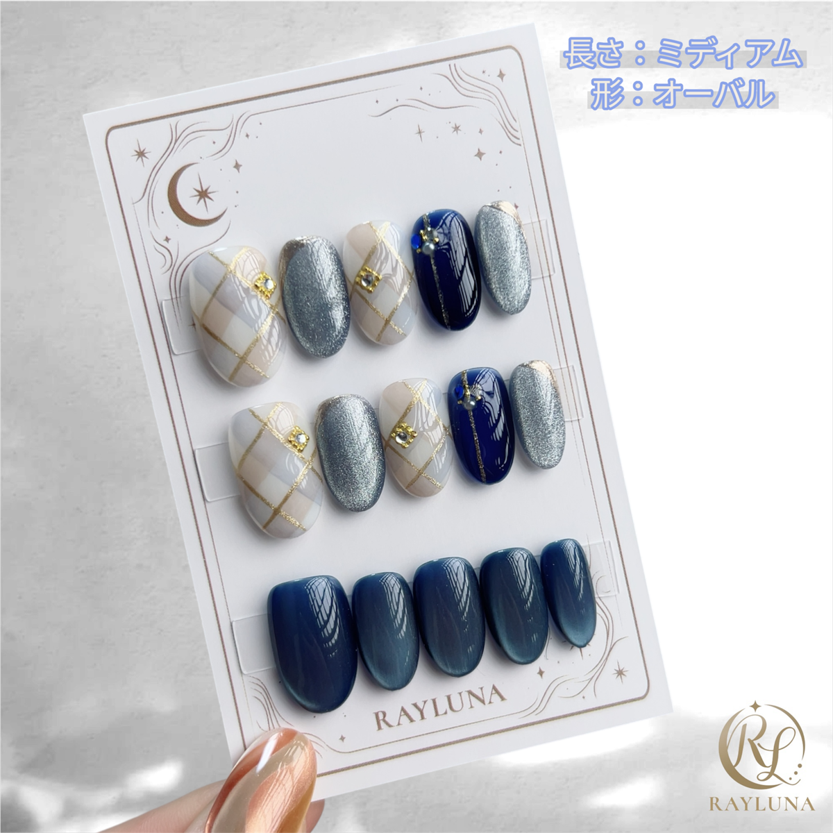 【#1014】レイルナオリジナル 15枚入り/繰返し使える【プレミアム】ネイルチップ/ミディアム オーバル