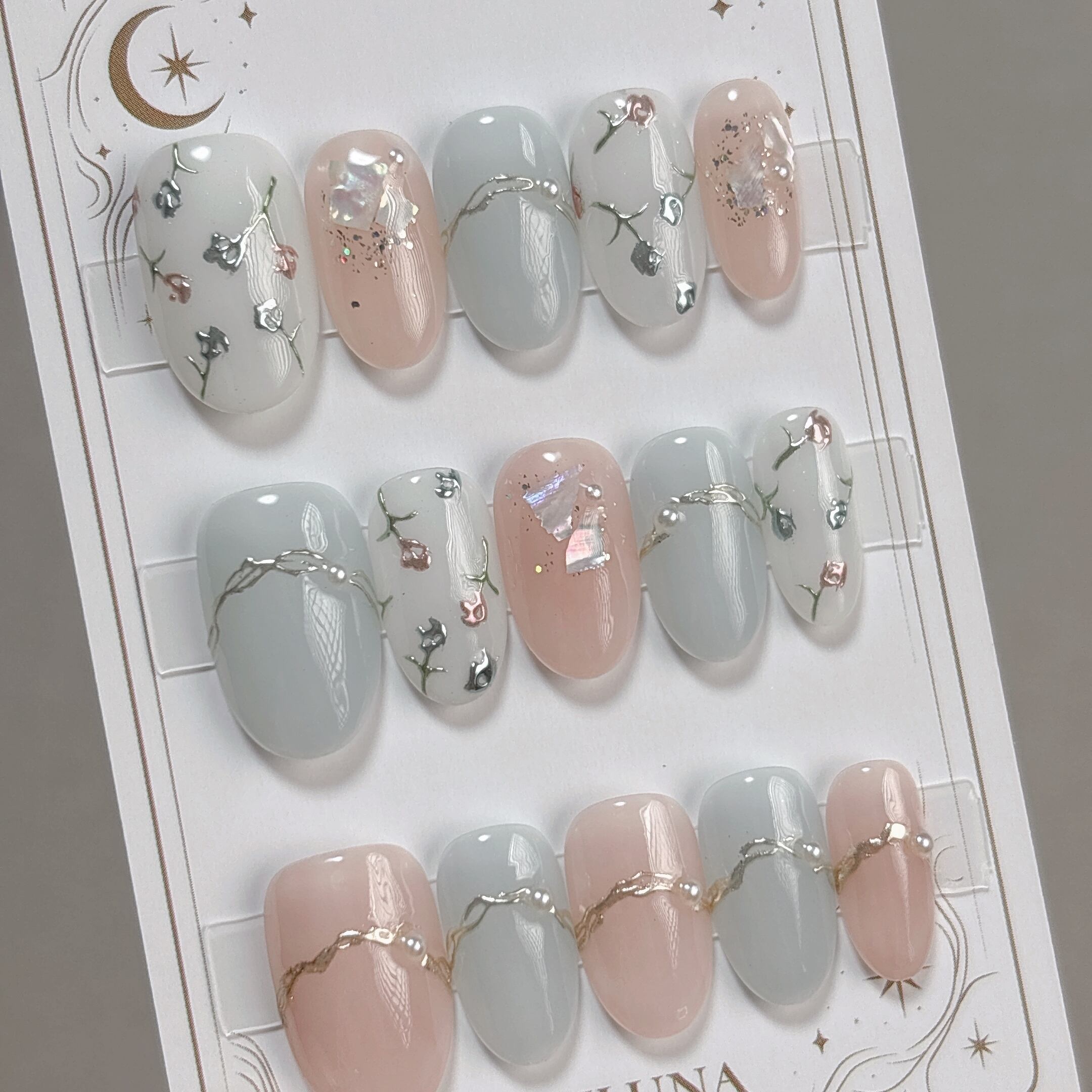 【#1043】繰返し使える15枚セット【プレミアム】ネイルチップ/ミディアム オーバル