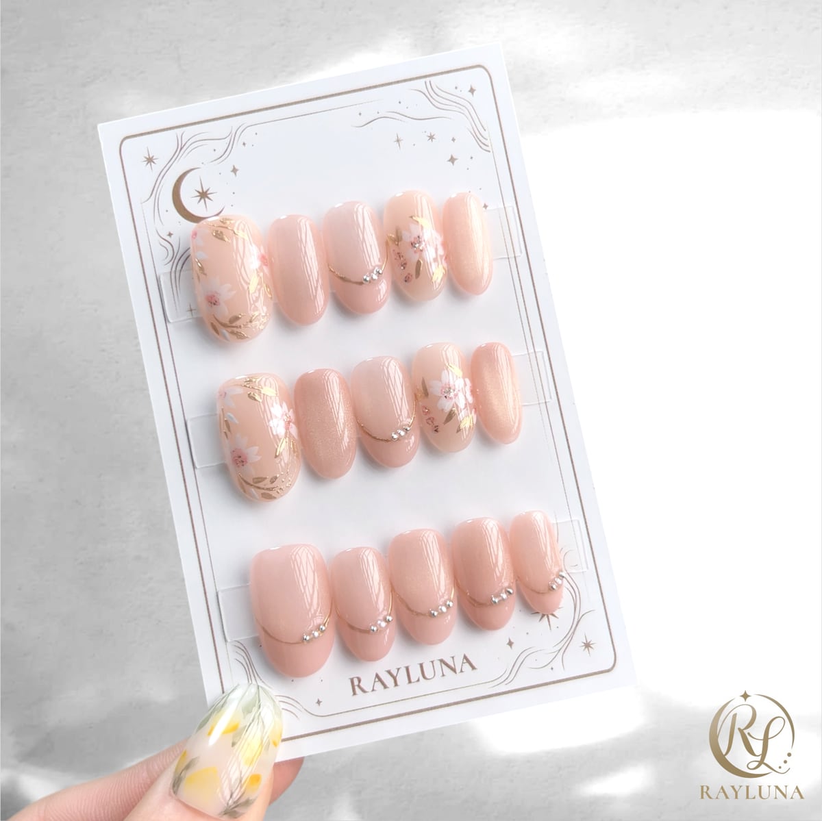 【#1058】レイルナオリジナル 15枚入り/繰返し使える【プレミアム】ネイルチップ/ミディアムオーバル
