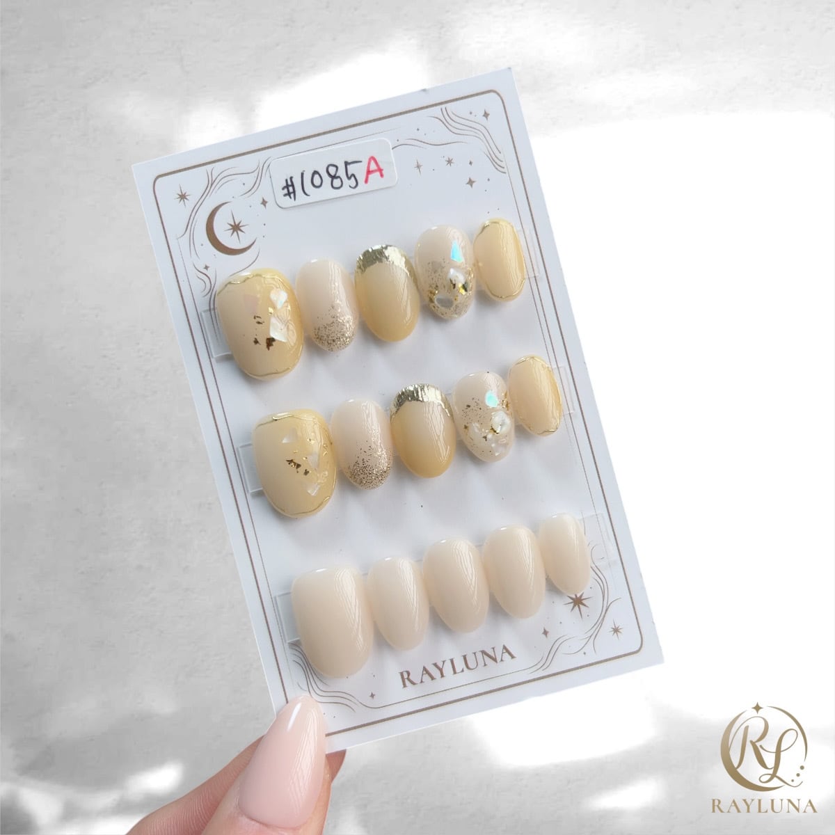 【#1085A】レイルナオリジナル 15枚入り/繰返し使える【プレミアム】ネイルチップ/ショート アーモンド