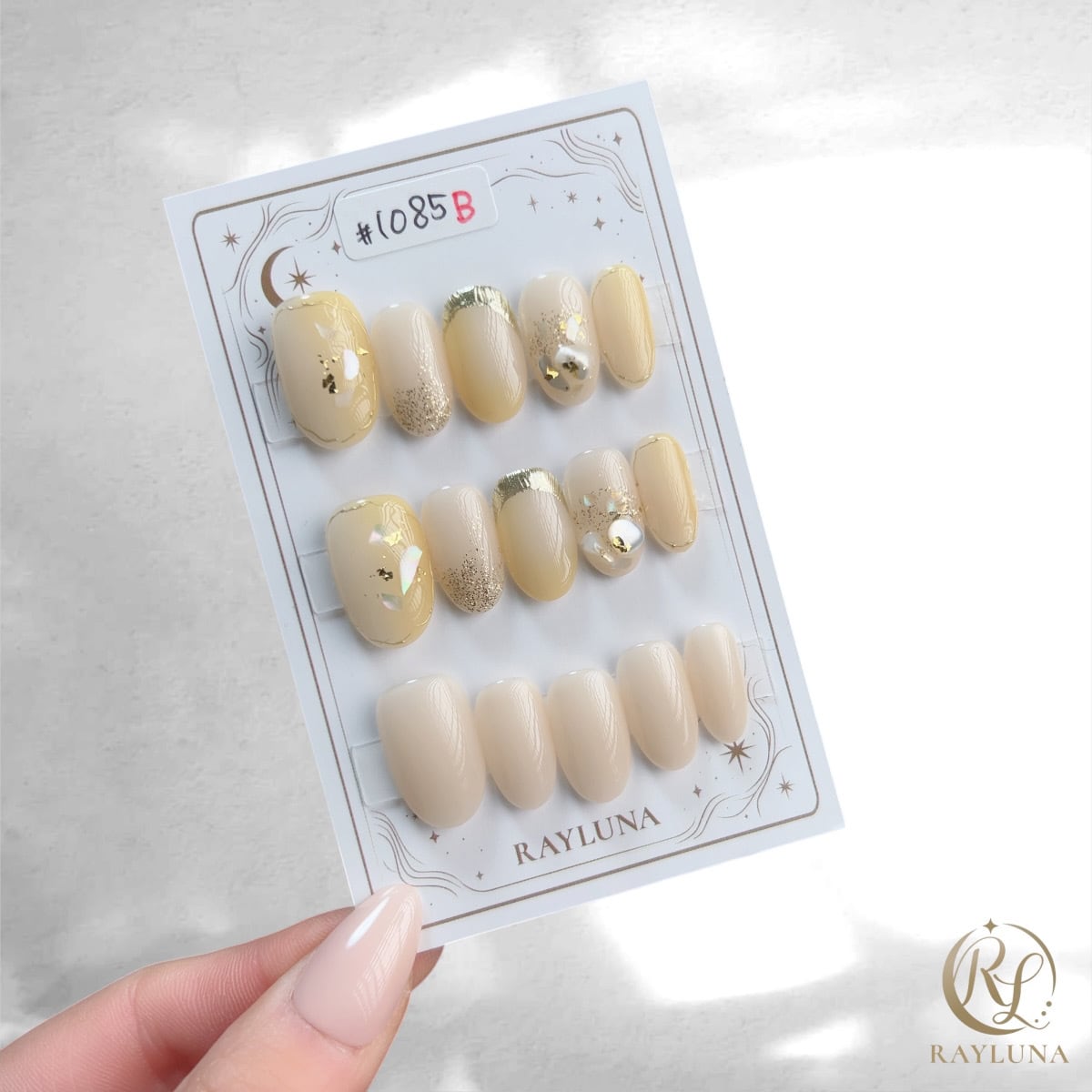【#1085B】レイルナオリジナル 15枚入り/繰返し使える【プレミアム】ネイルチップ/ミディアム オーバル